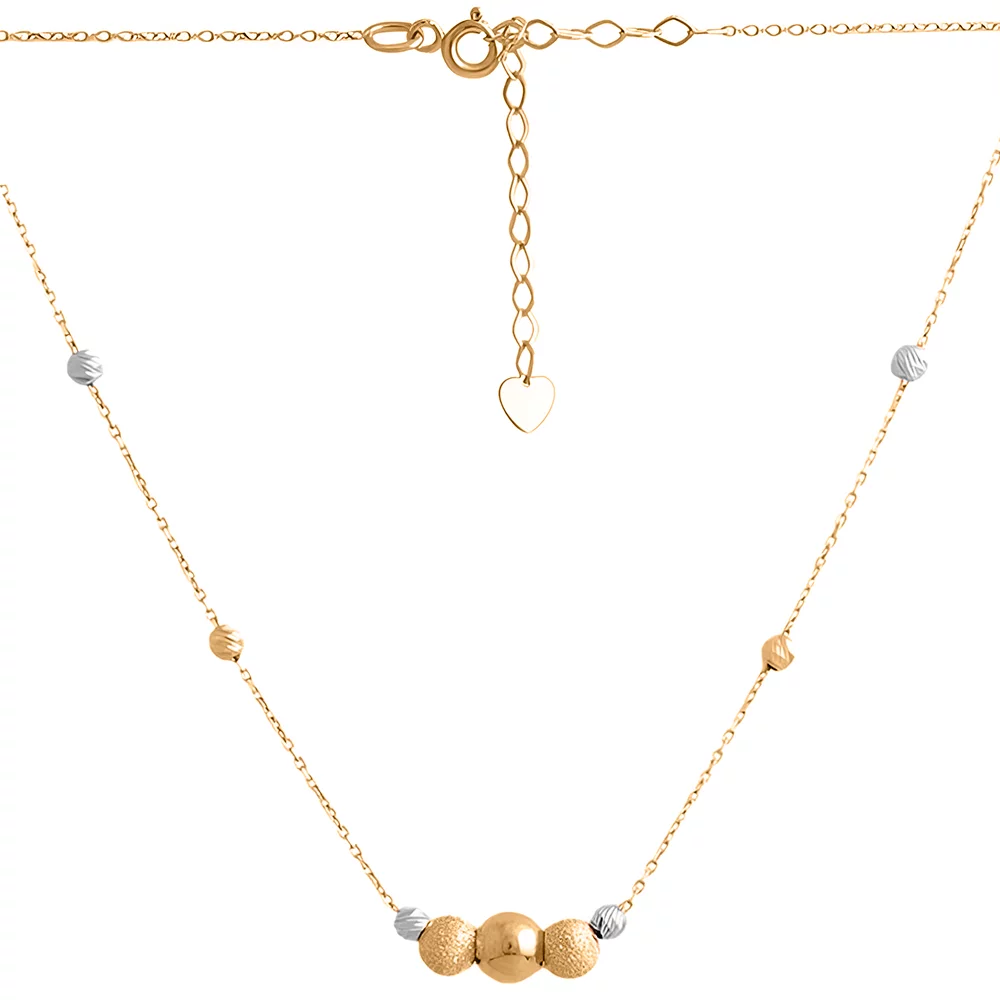 Колье из комбинированного золота "Шарики" плетение якорное - 1544320