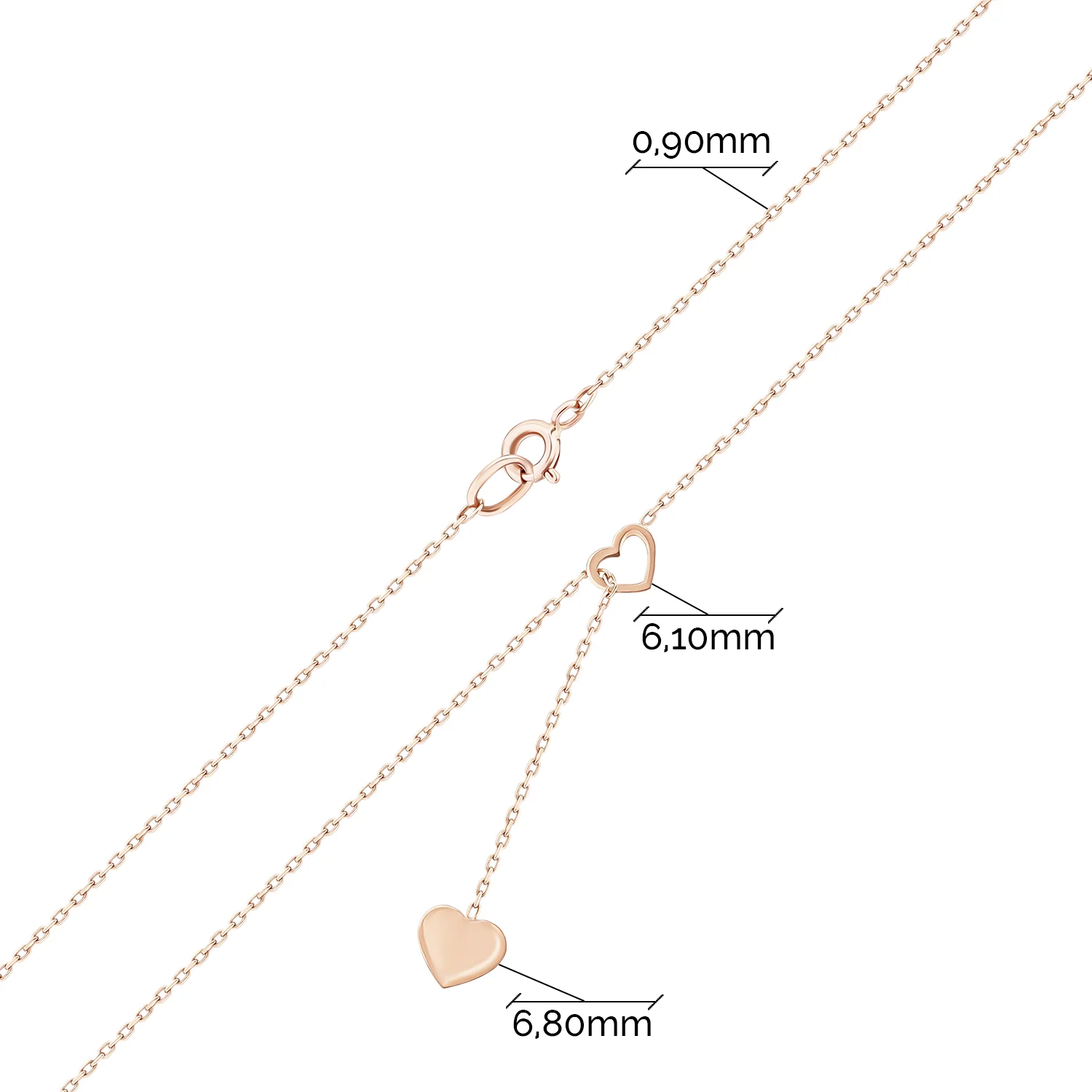 Элегантное колье-галстук "Сердце" в красном золоте с якорным плетением - 1916574