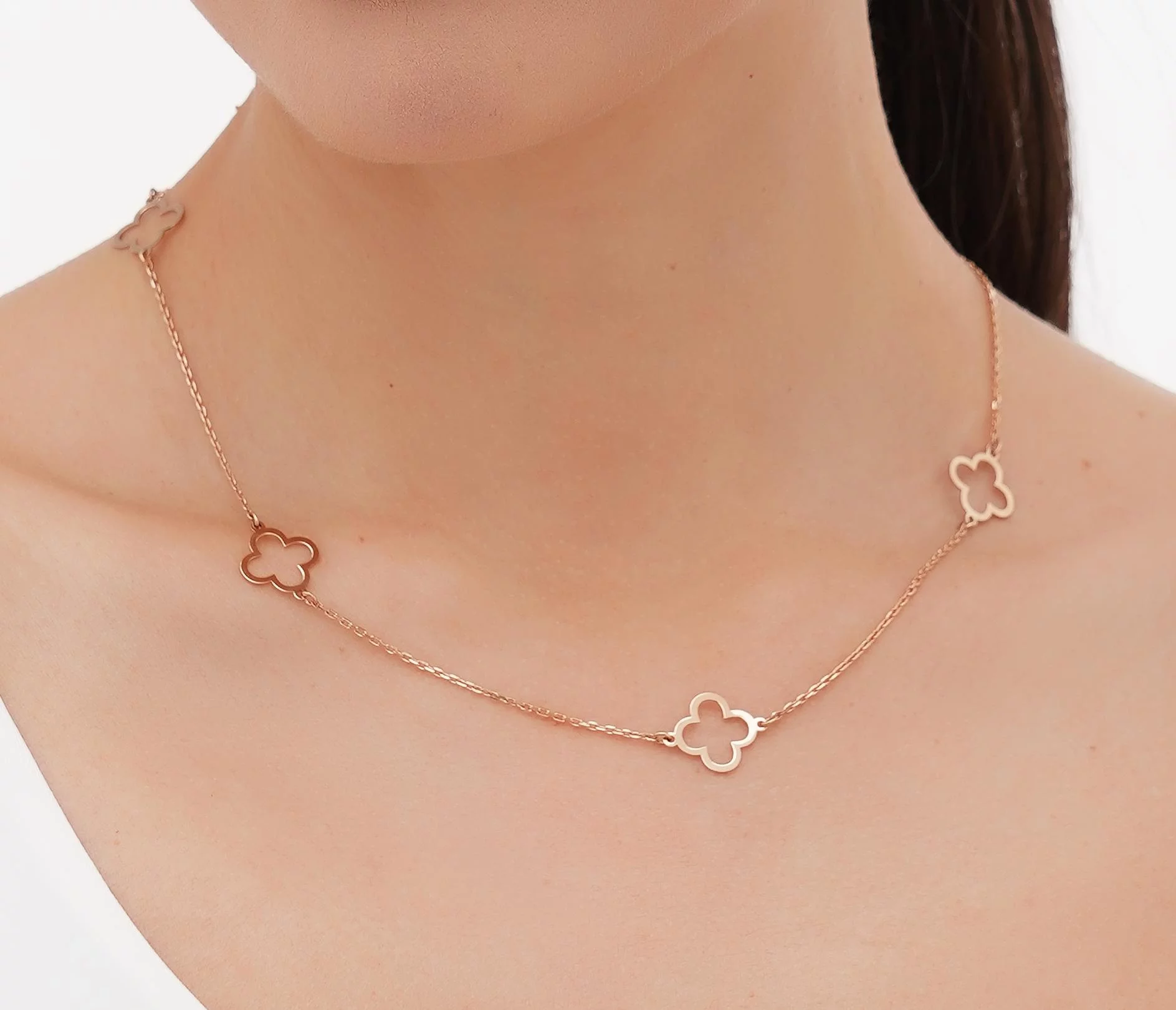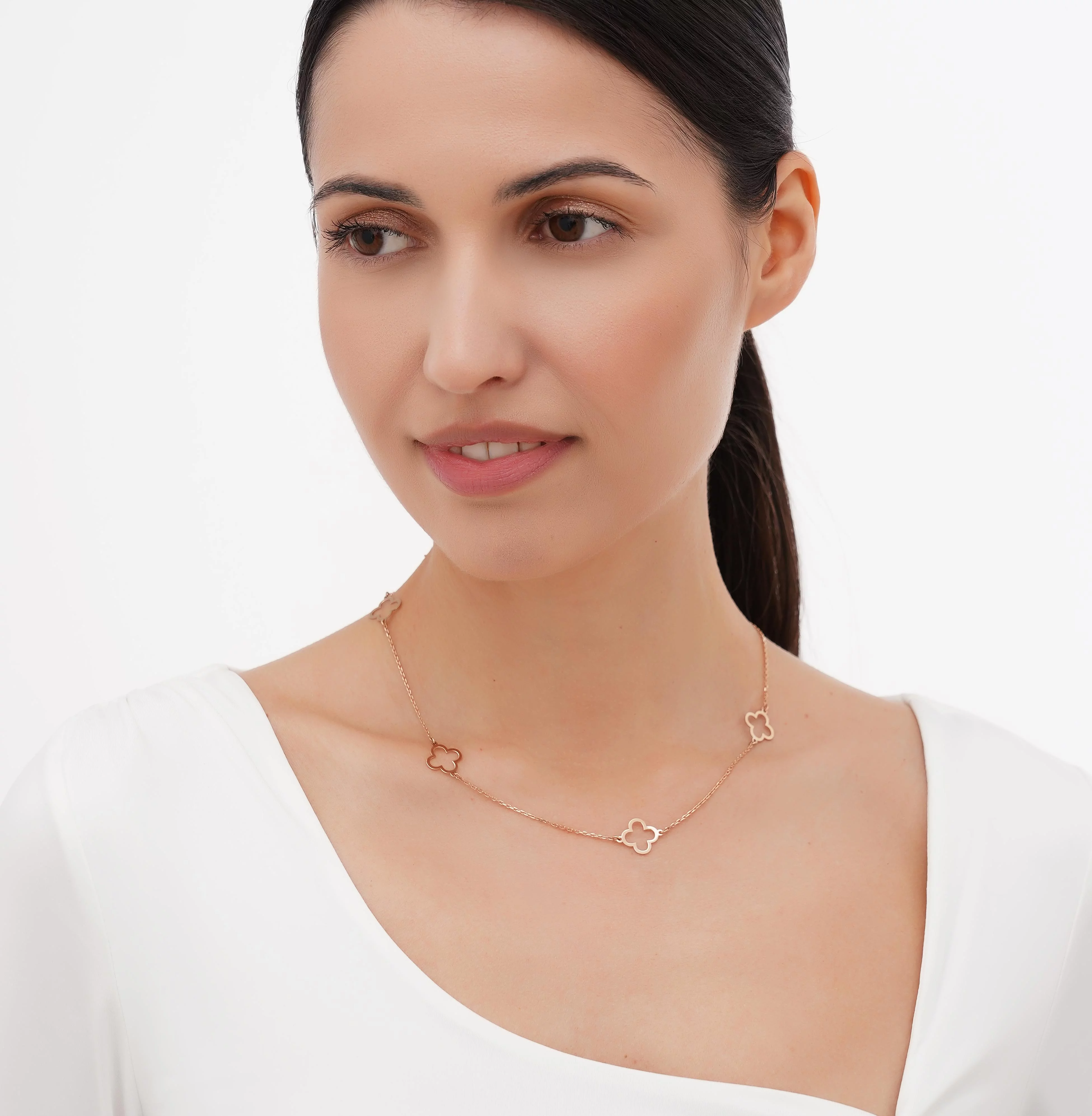Колье с подвесами "Клевер" из красного золота в якорном плетении - 1736910