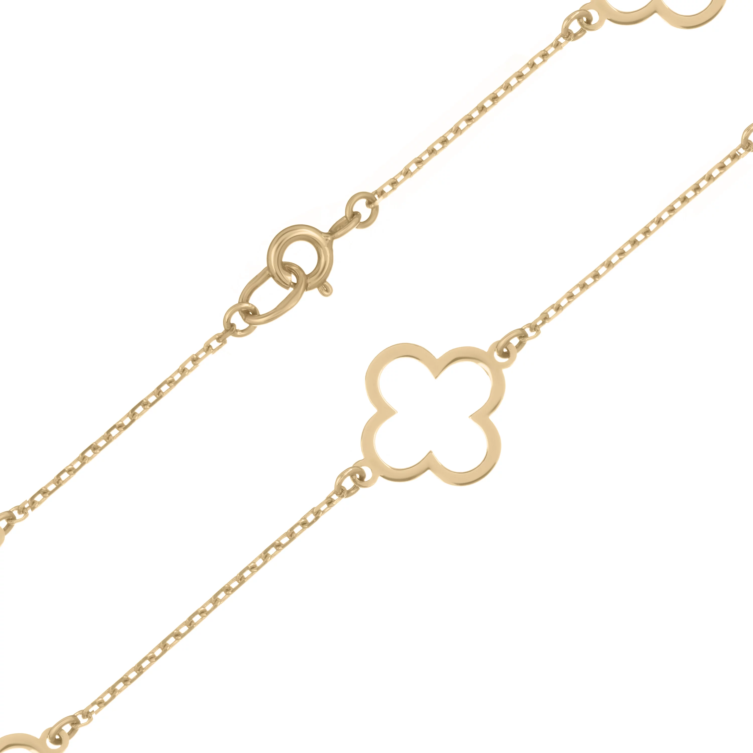 Элегантное колье с подвесом "Клевер" из желтого золота с якорным плетением - 1879315