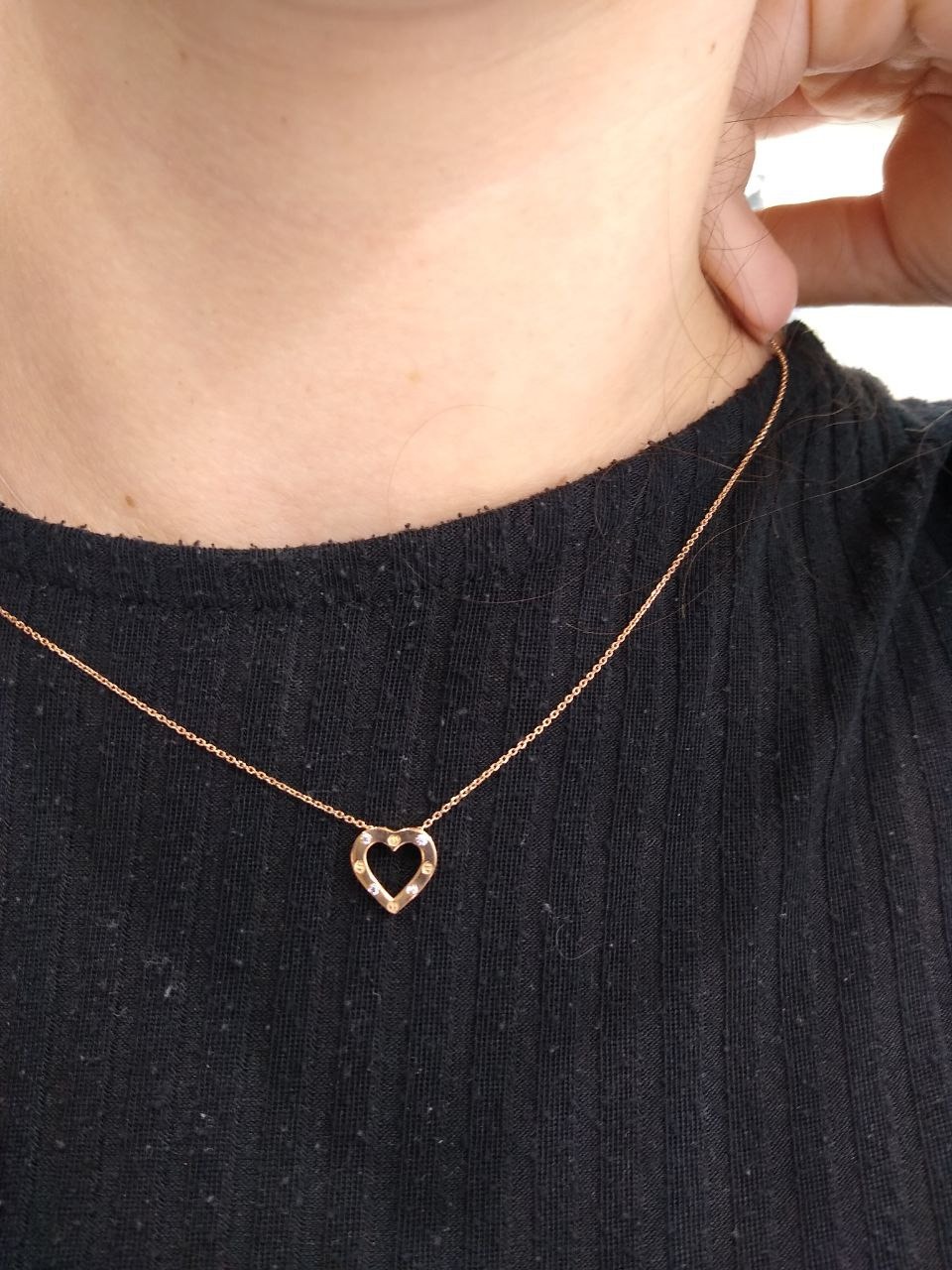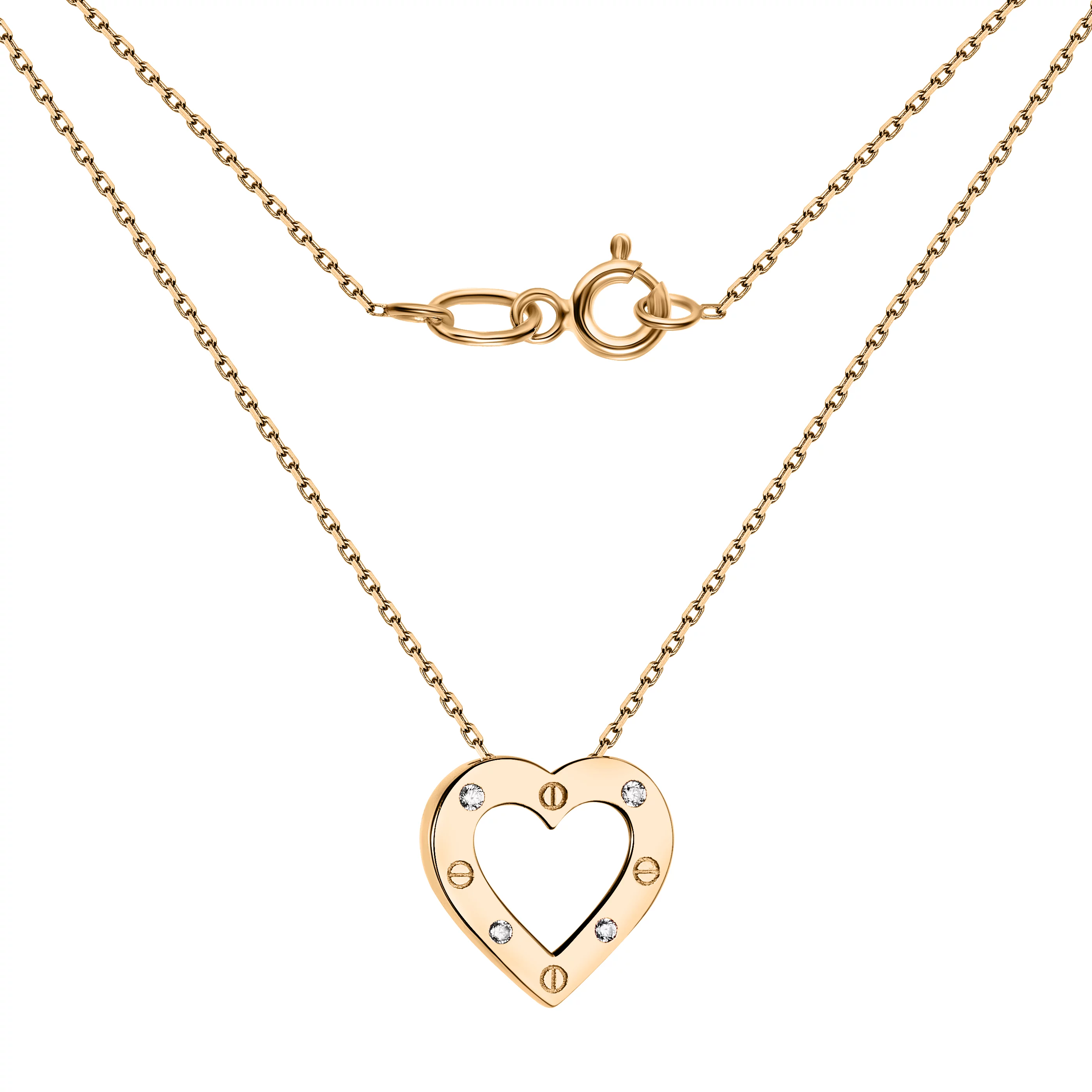 Колье в красном золоте с подвеской "Сердечко" с фианитами плетение якорь и шопард - 1618795