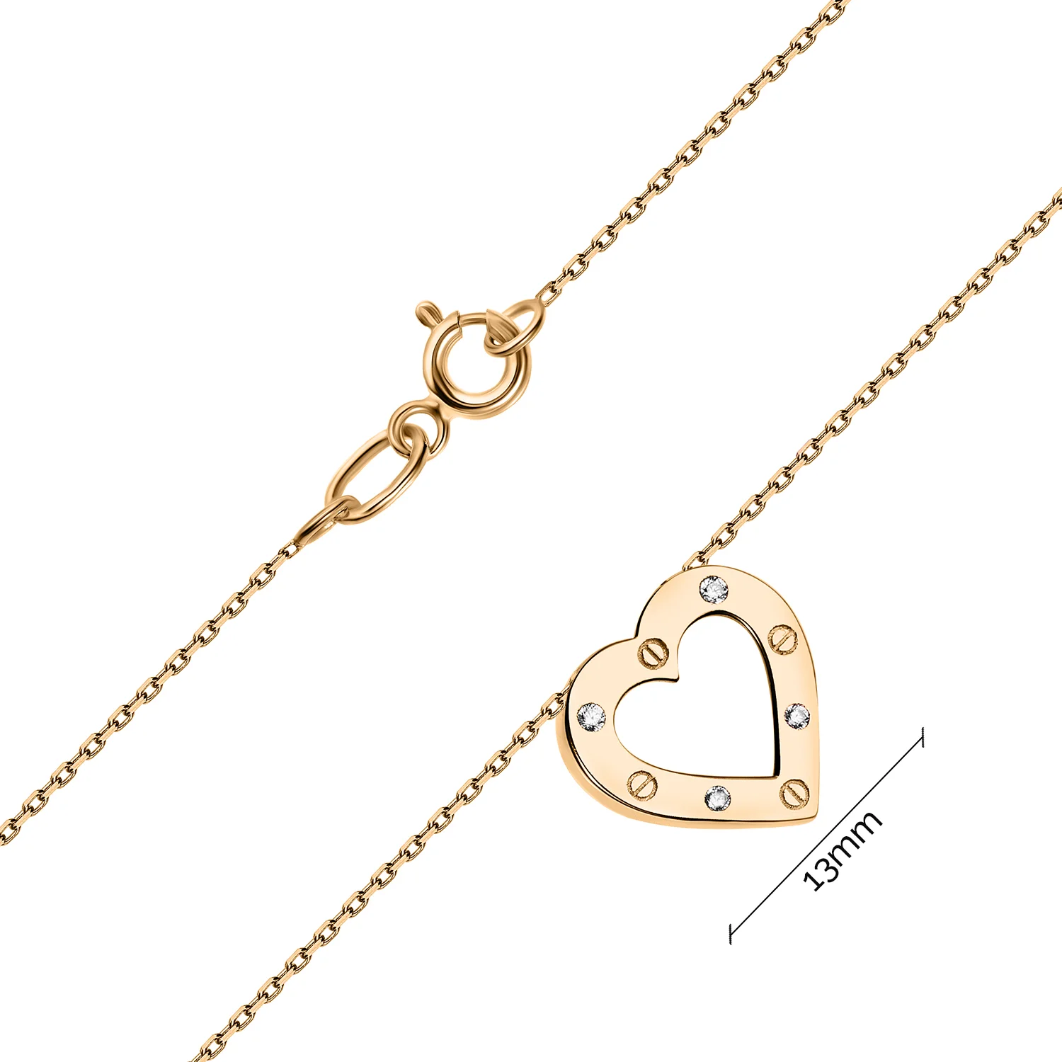 Элегантная цепочка с подвесом "Сердце" из красного золота с якорным плетением и фианитами - 1923915