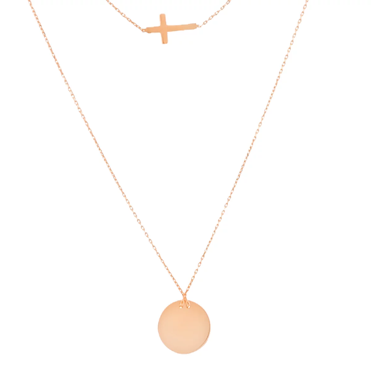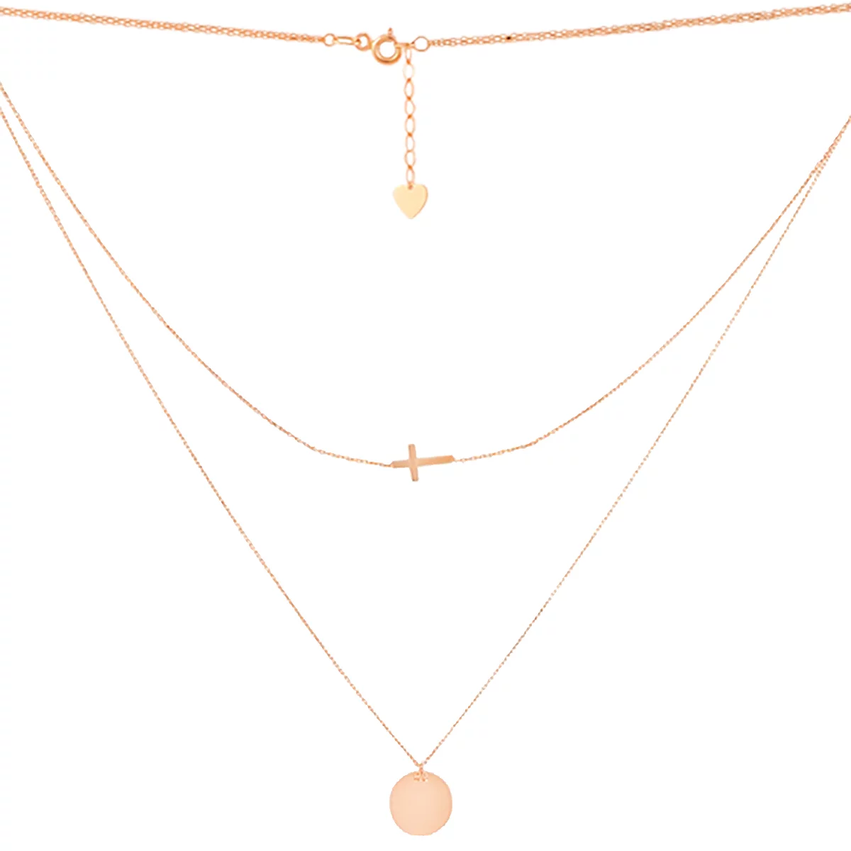 Колье из красного золота Монетка и крестик в плетении Якорь - 965865