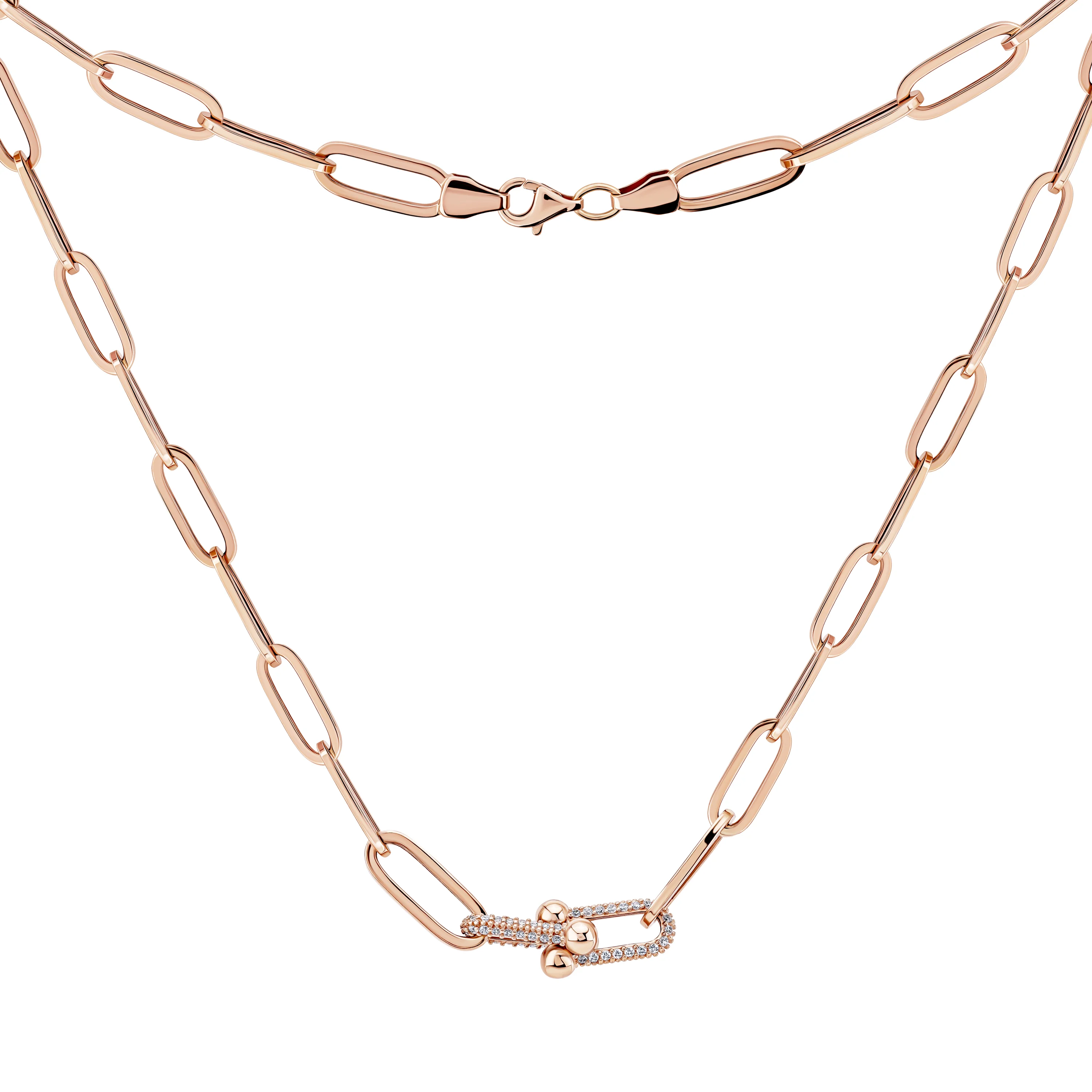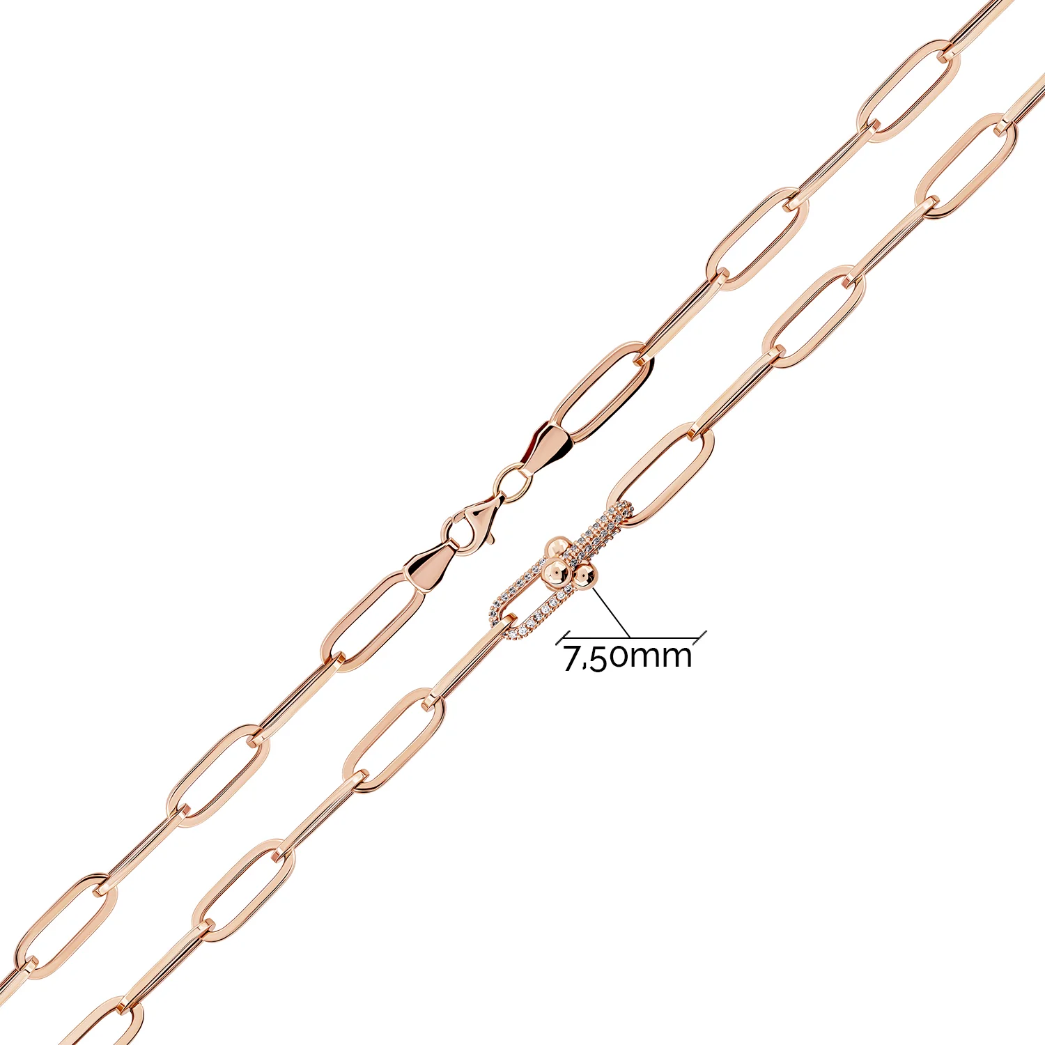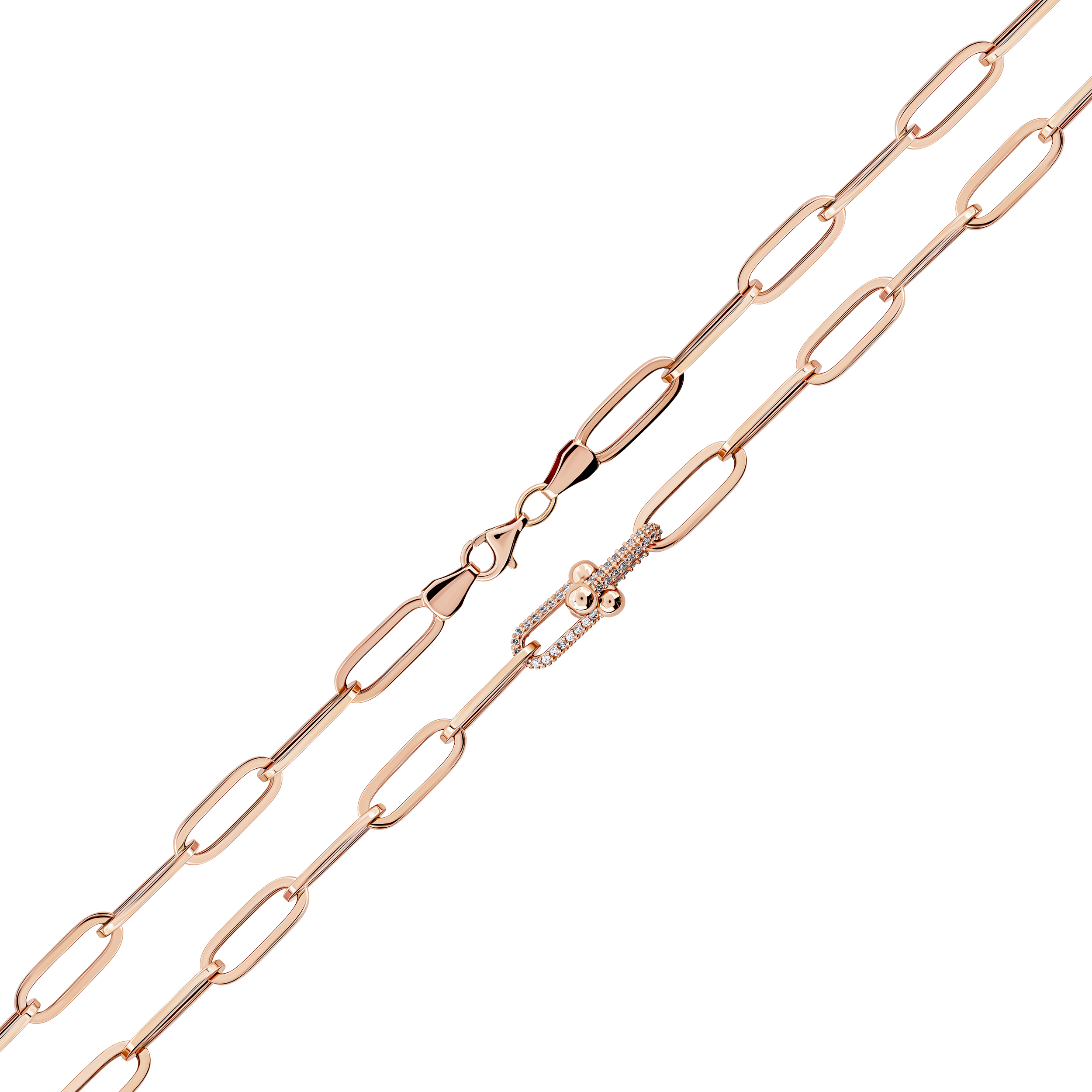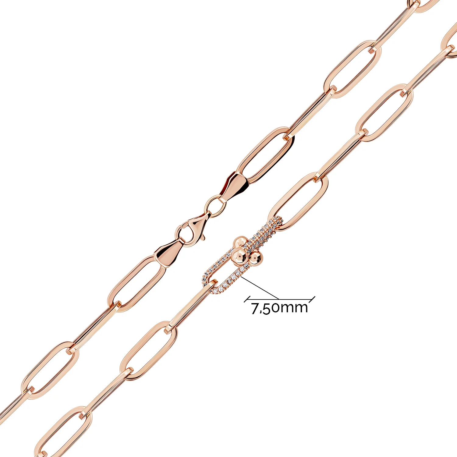 Колье из красного золота с фианитами якорного плетения - 1999771