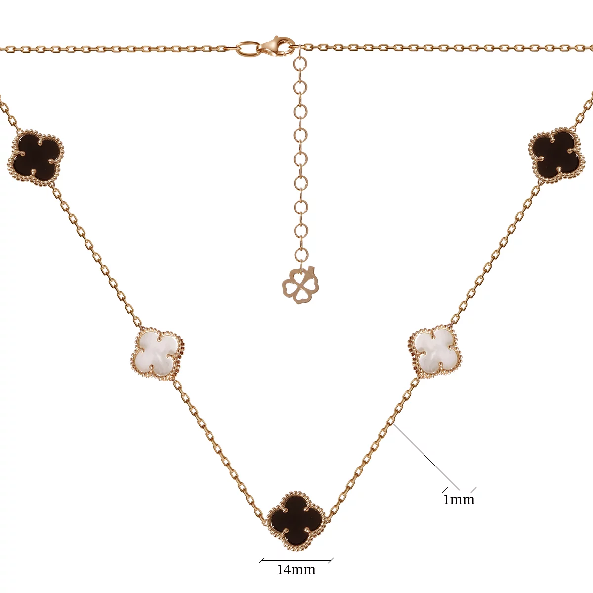 Колье из красного золота с подвесами из оникса "Клевер" в якорном плетении - 1744970