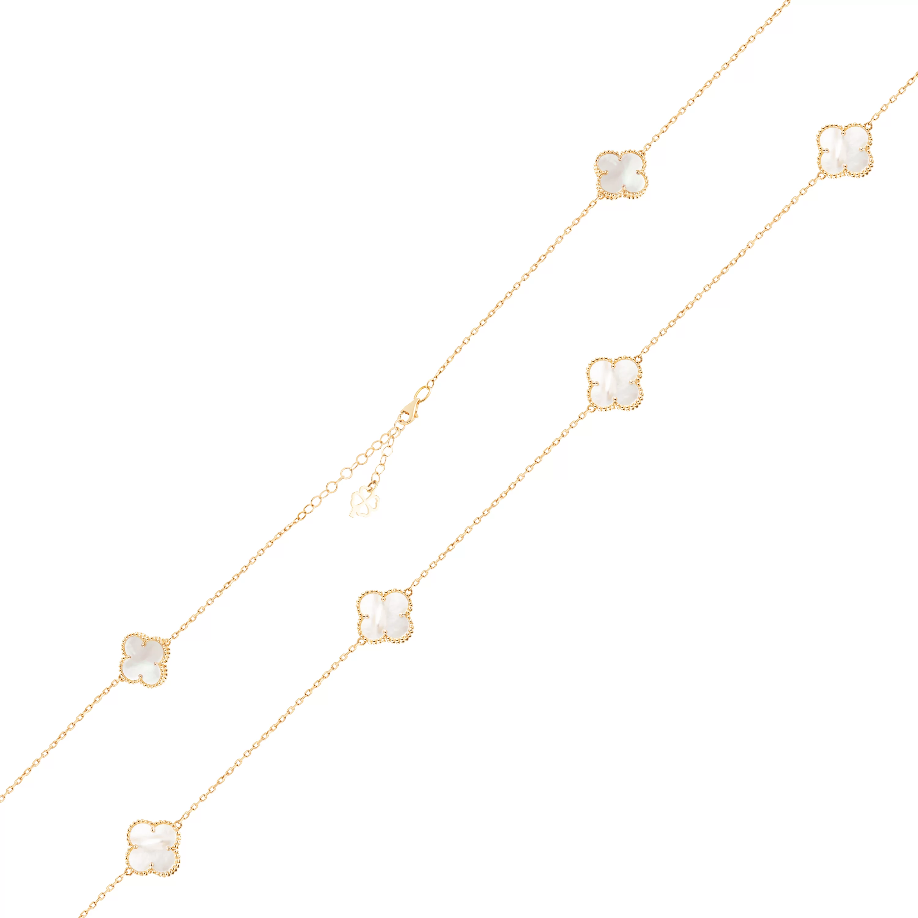 Колье из красного золота с подвесами из оникса и перламутра "Клевер" в плетении якорь - 964689