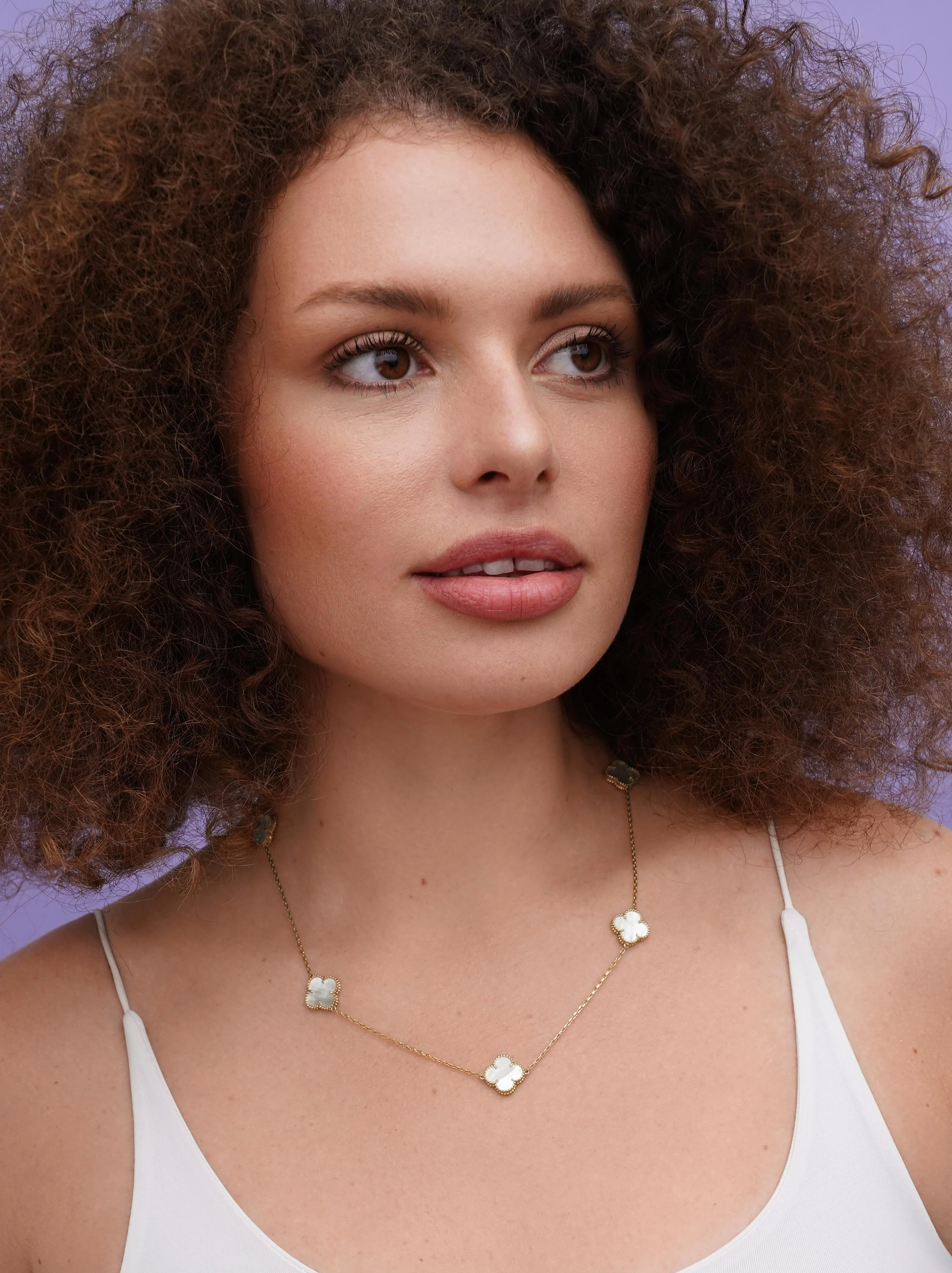 Колье из лимонного золота с подвесами "Клевер" с фианитами якорного плетения - 1747960
