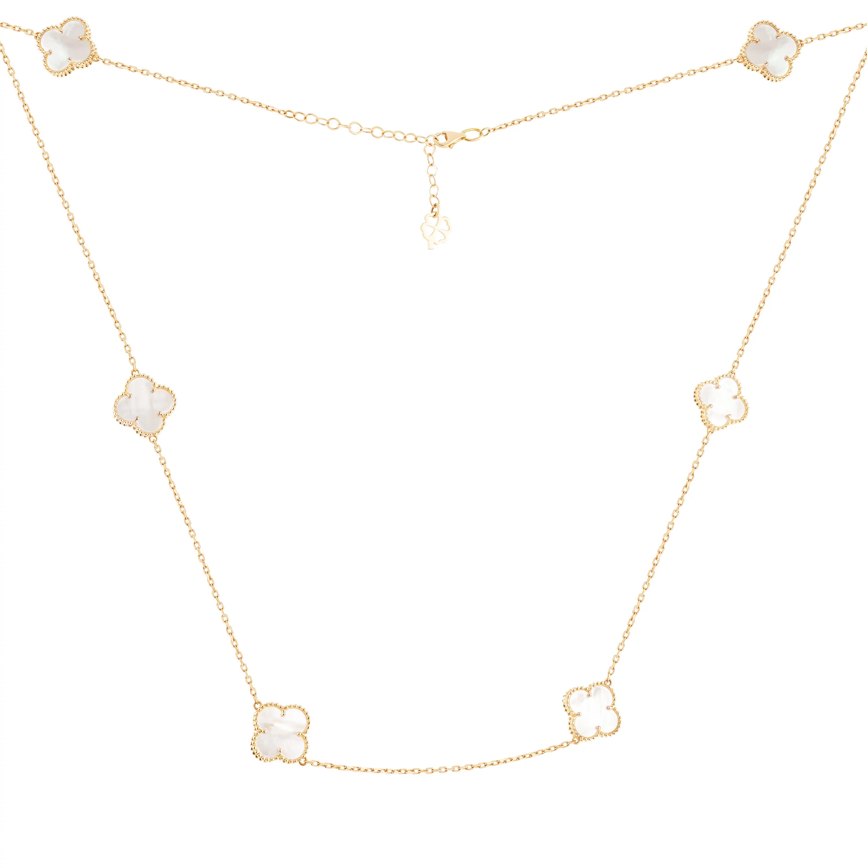 Элегантное колье с подвесом "Клевер" из желтого золота с якорным плетением - 1879315