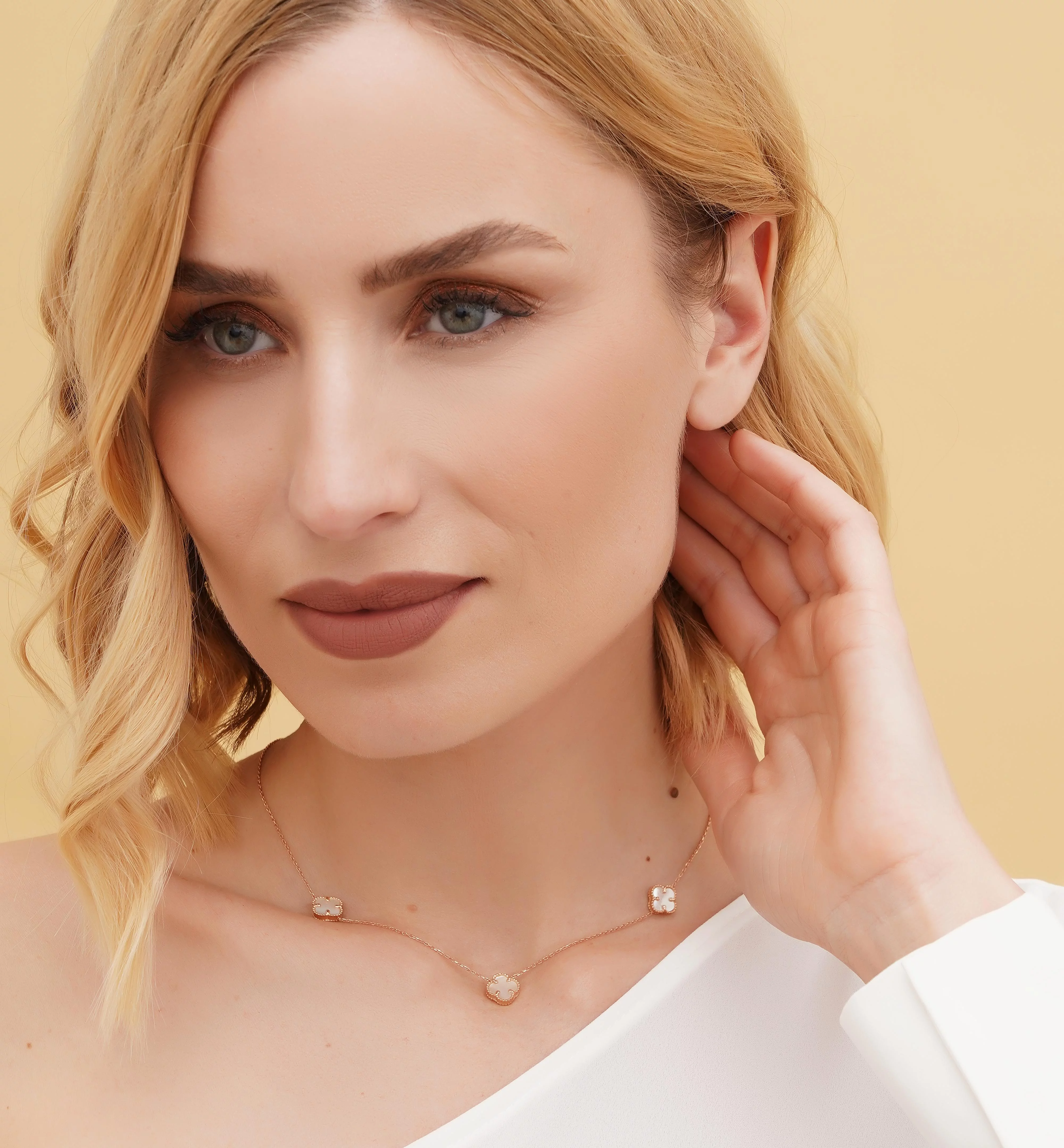 Колье из лимонного золота с подвесами "Клевер" с фианитами якорного плетения - 1747960
