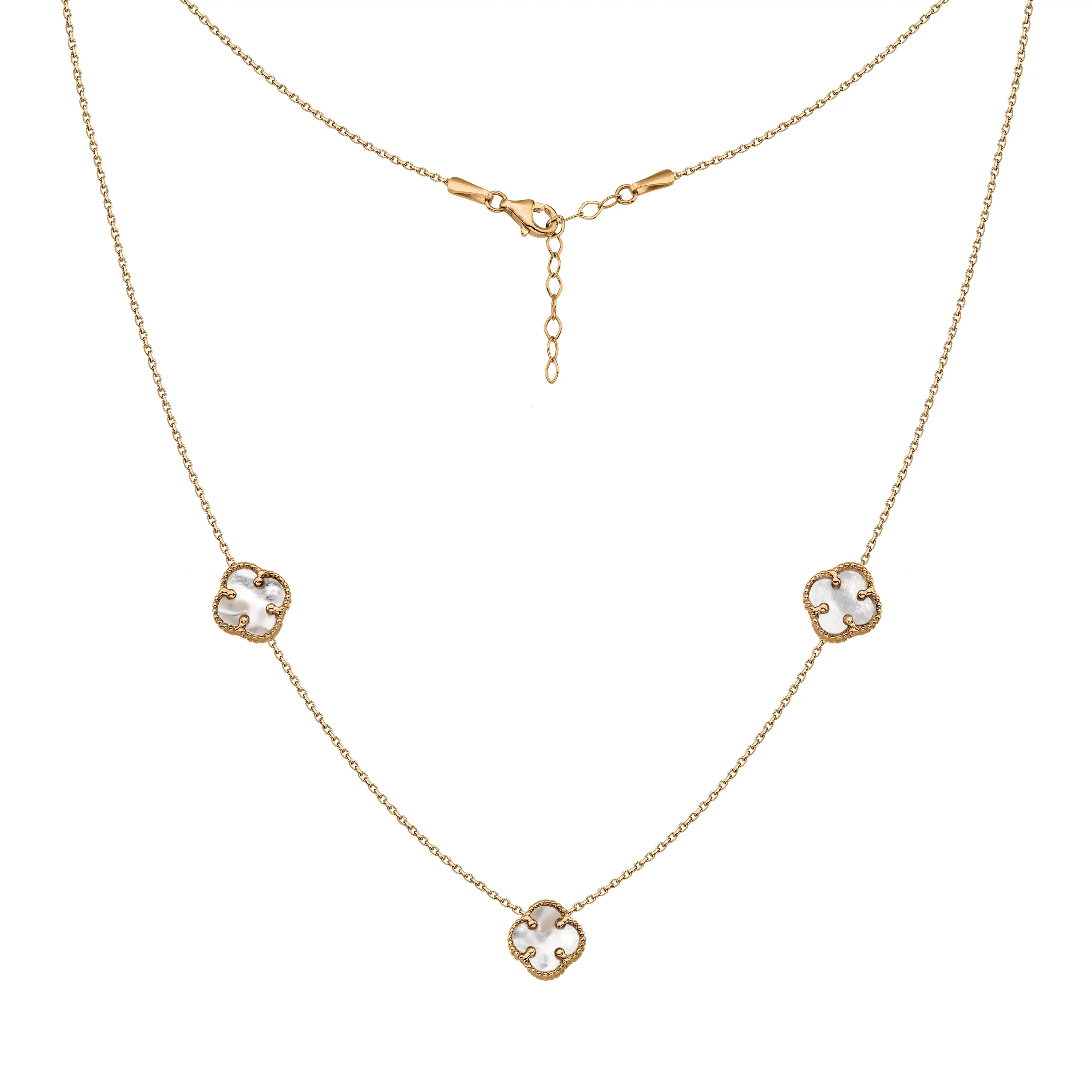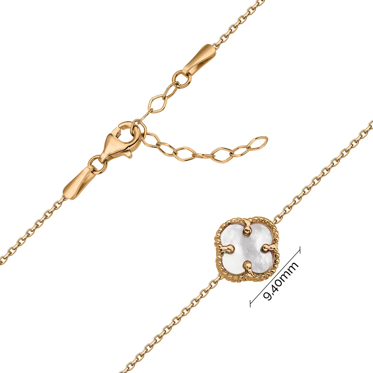 Колье из красного золота с подвесами из оникса и перламутра "Клевер" в плетении якорь - 964689