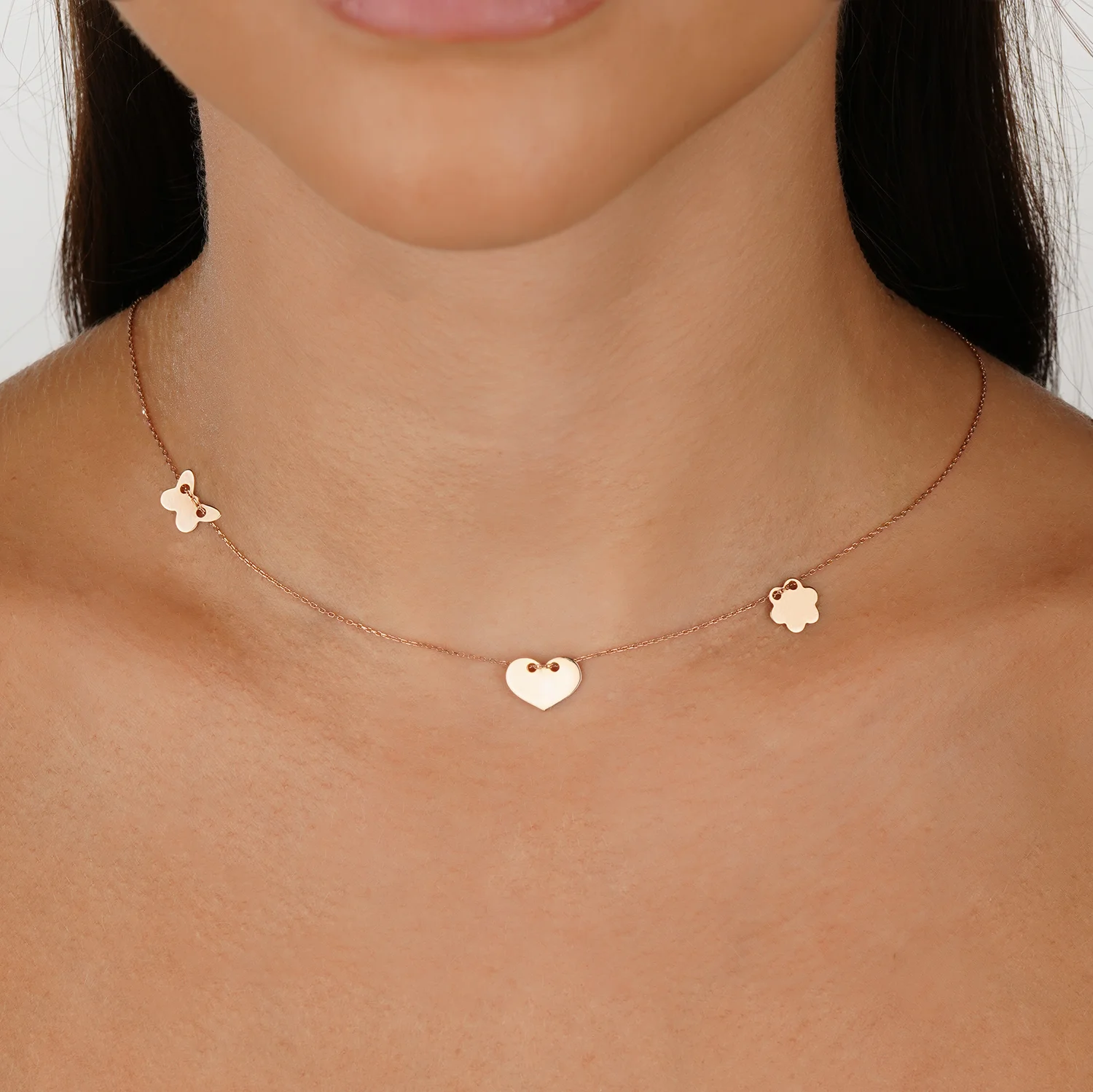 Цепочка из красного золота с подвесами "Сердце, бабочка и цветок" плетение якорь - 2092327