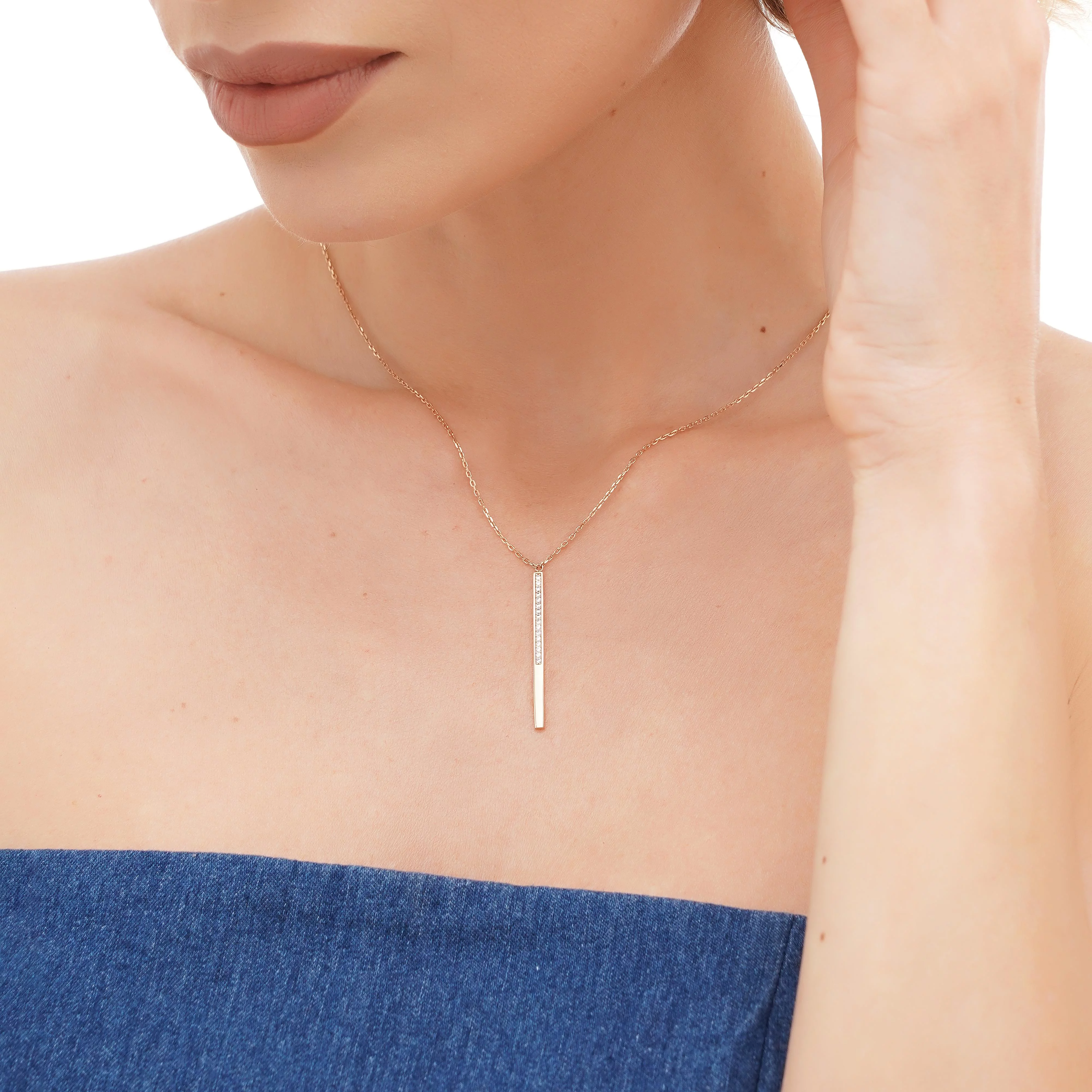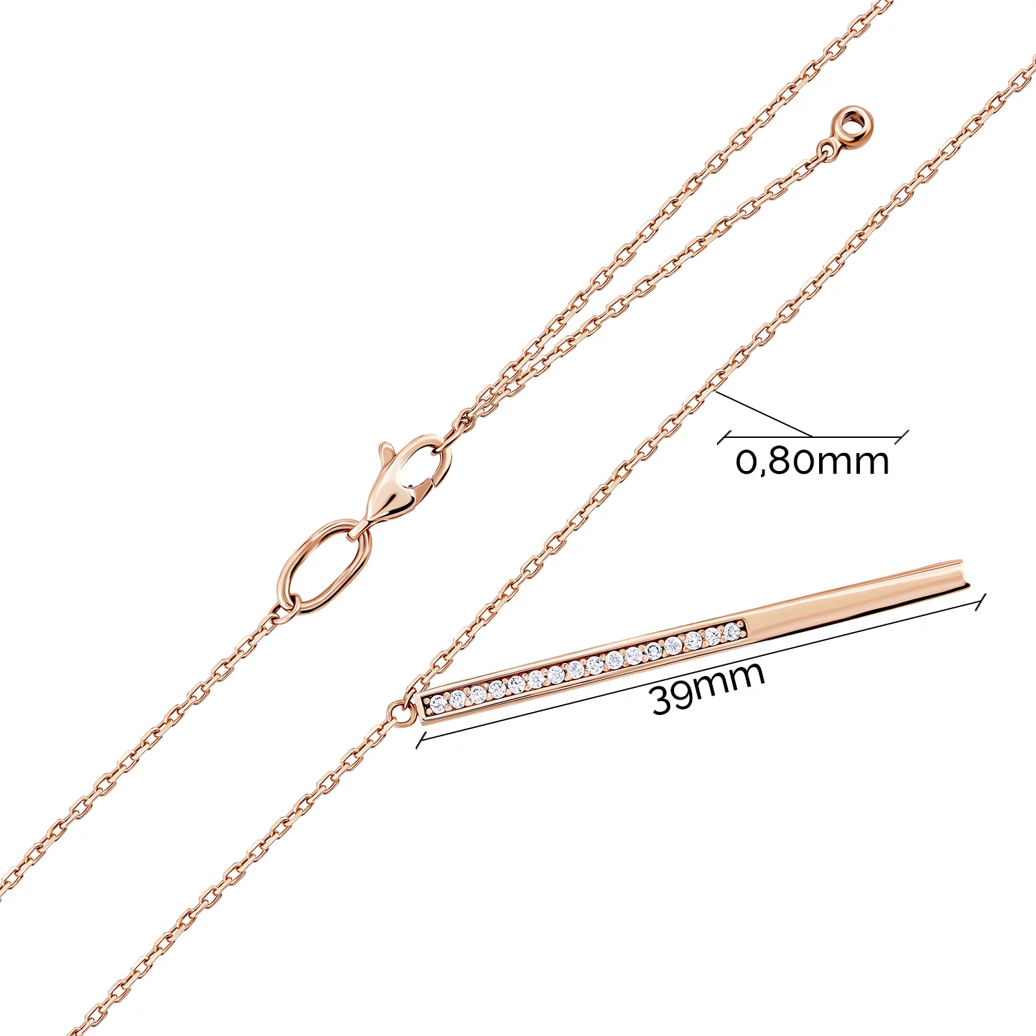 Цепочка с подвесом из красного золота и фианитом плетение якорное - 1747957