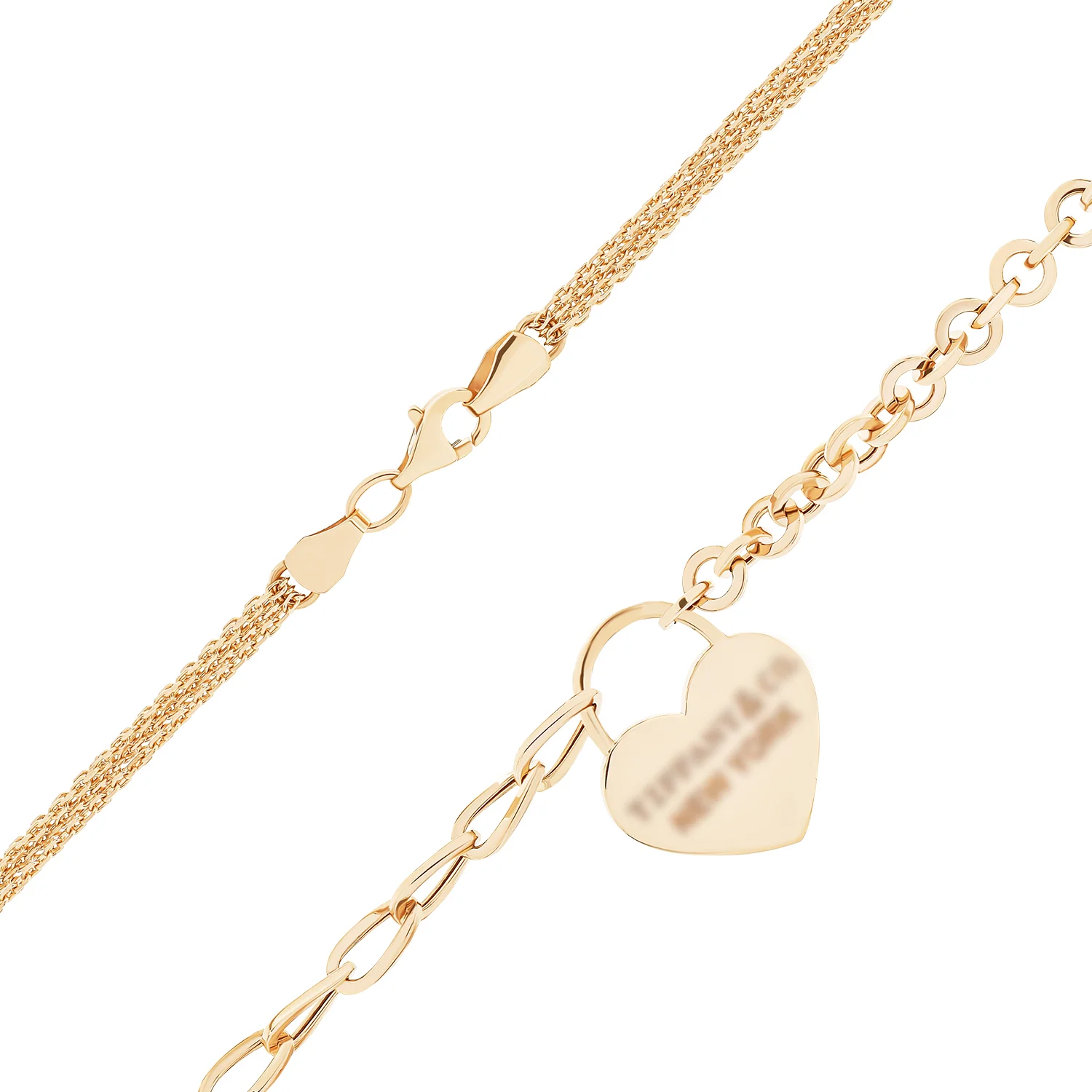 Колье из красного золота с подвеской "Сердечко" плетение якорь - 1529867