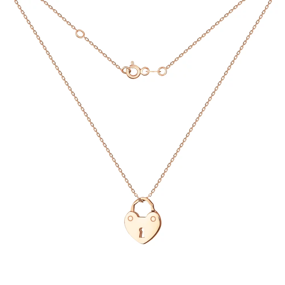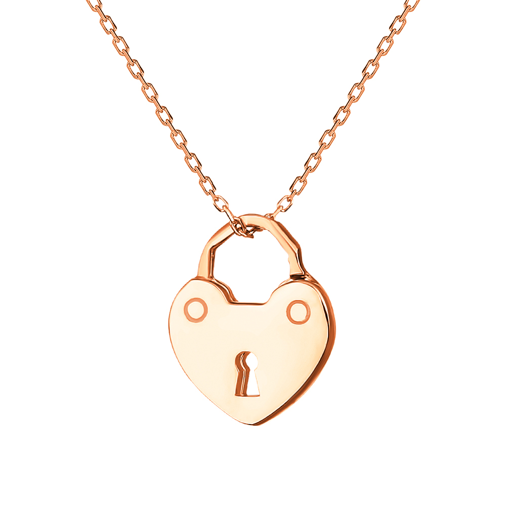 Изящная и эффектная цепочка с кулоном привлекает внимание символикой, которая говорит о многом. Сердце на замке из красного золота 585 пробы создает романтичное и загадочное настроение. Тонкая цепочка якорного плетения красиво ложится на шее и не отвлекает внимание от подвеса. Крепится украшение при помощи шпрингельного замка. Это маленькое колечко с пружинной защелкой, аккуратное и незаметное. Длину цепочки можно регулировать по настроению — для этого есть дополнительный элемент. Игривое и одновременно деликатное украшение легко комбинировать с другими драгоценностями.