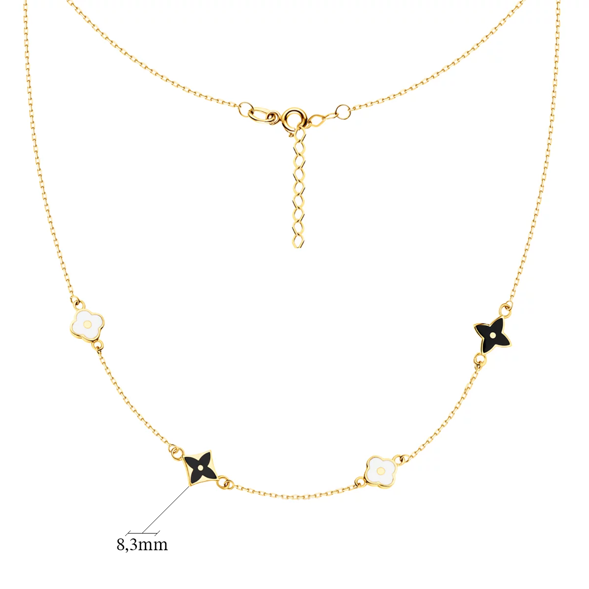 Стильное колье с подвесами "Цветы" в желтом золоте с эмалью и якорным плетением - 1879339