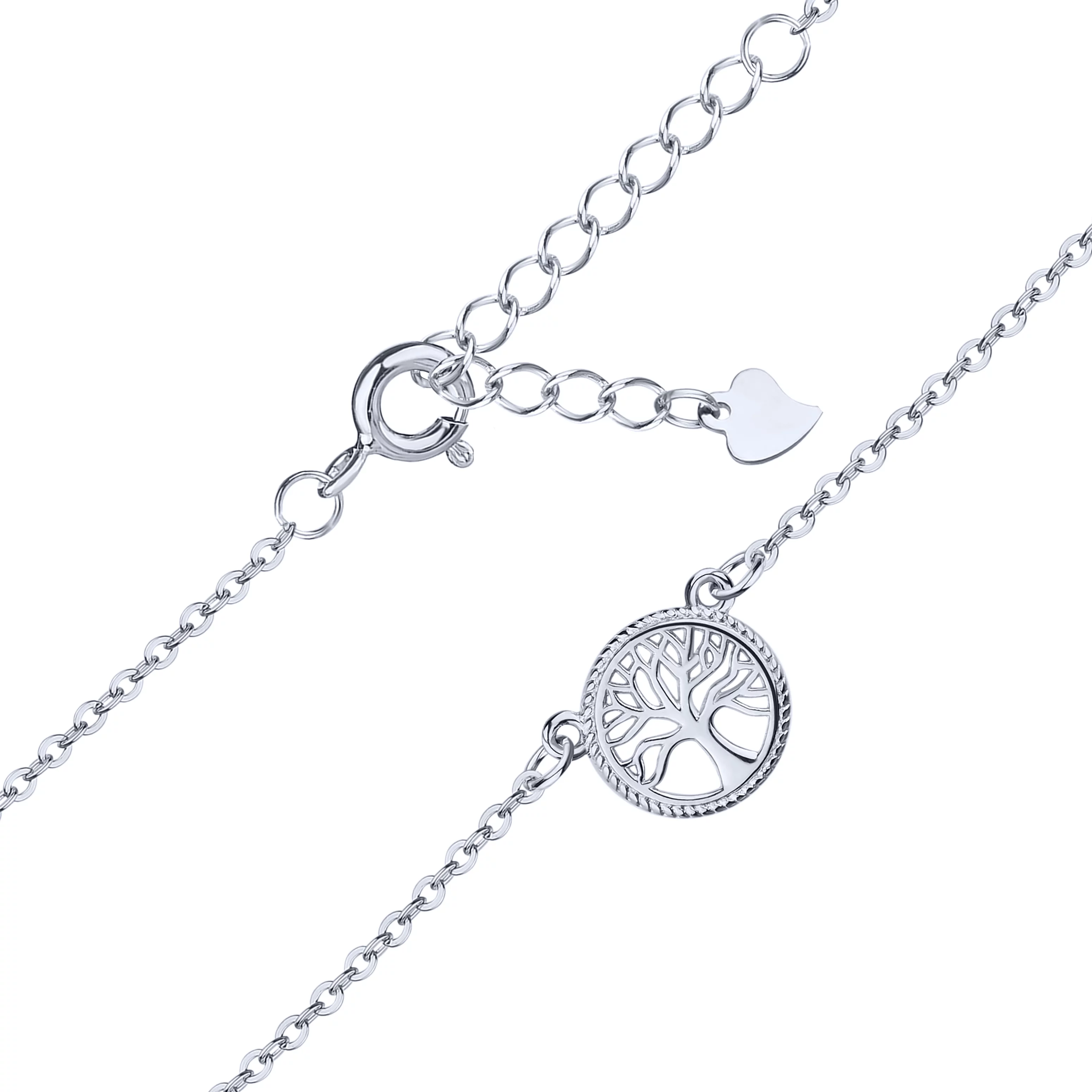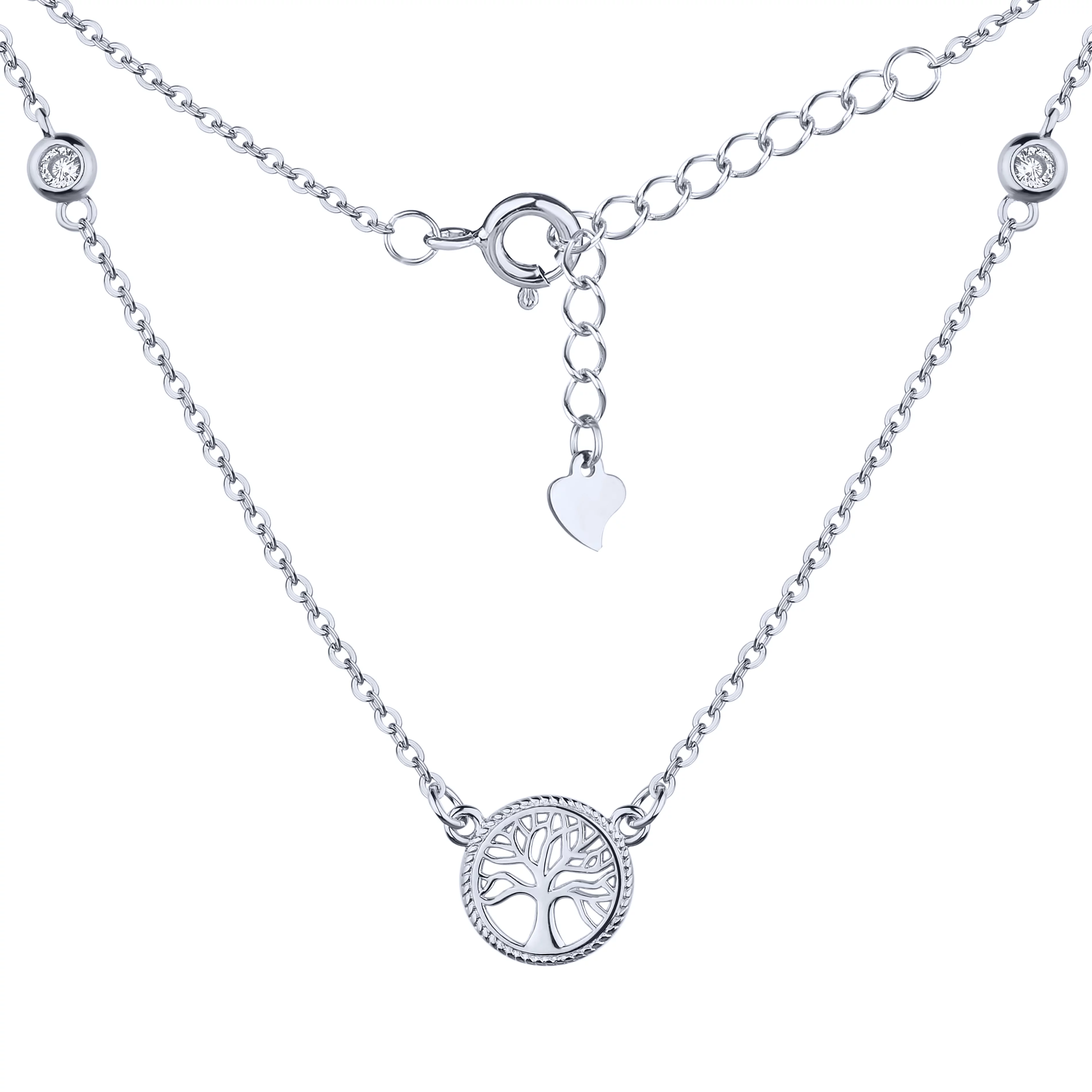 Колье с подвесом "Сердце" серебряное с фианитами якорное плетение - 1688463