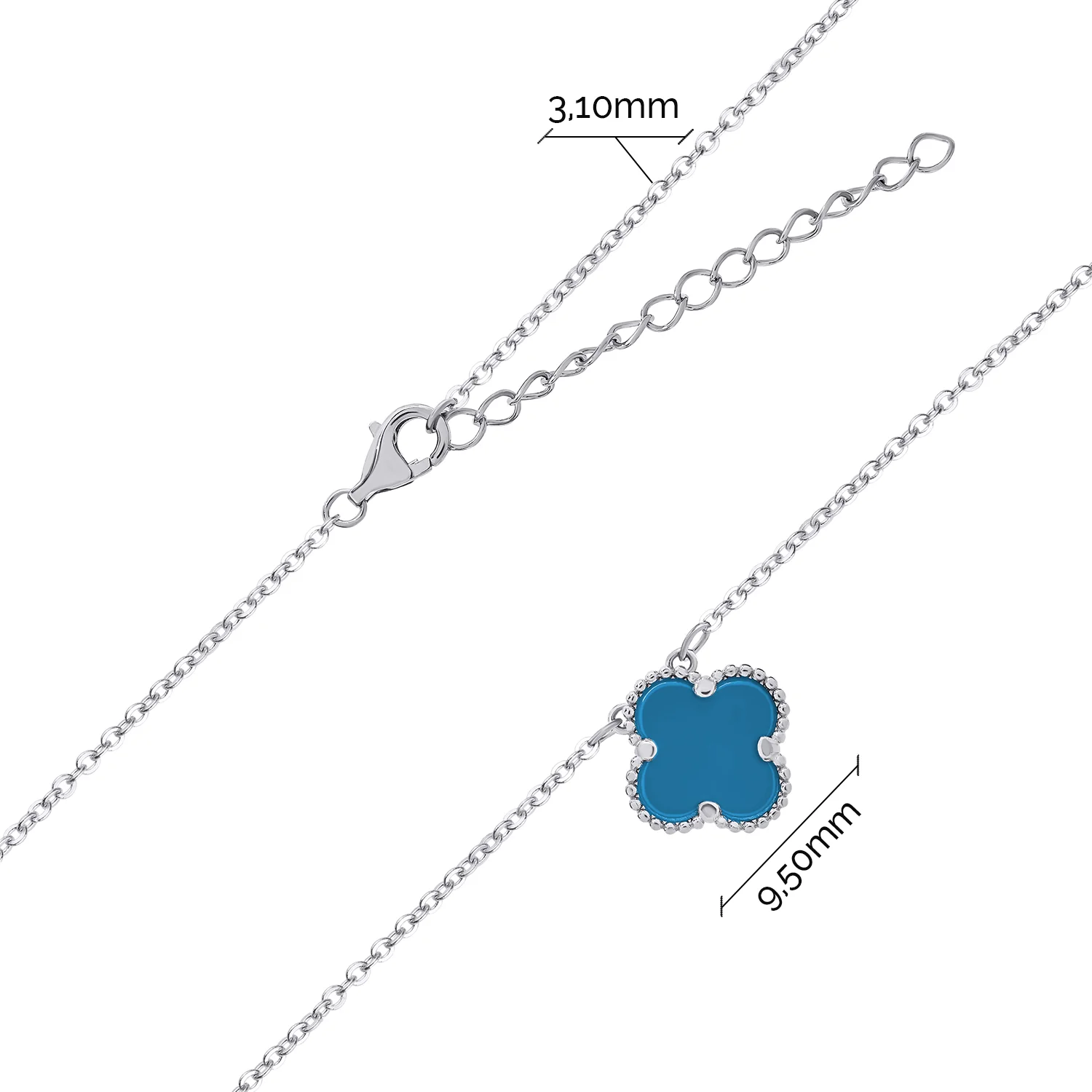 Серебряное кольє с подвесом "Клевер" с ониксом якорное плетение - 1822877