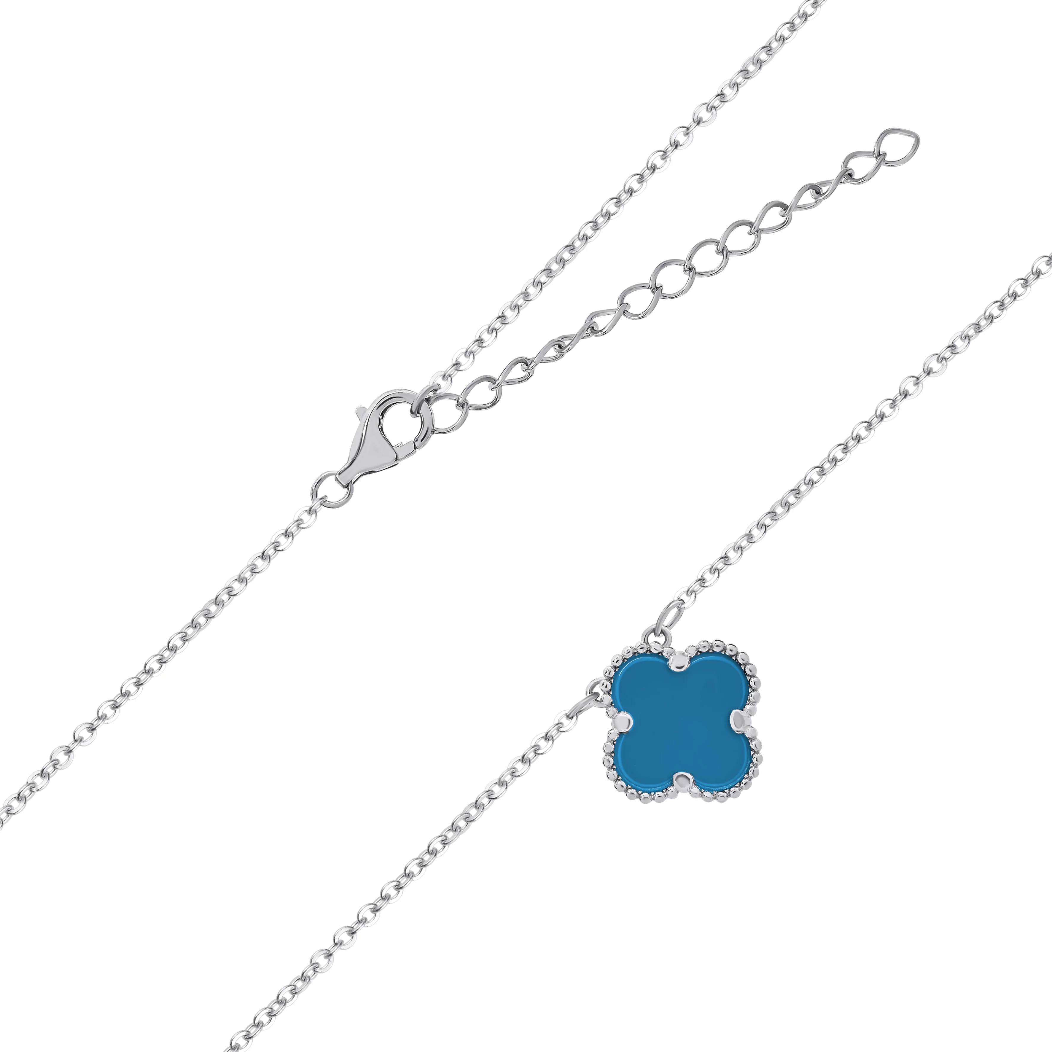 Серебряное колье с подвесом "Клевер" с ониксом якорное плетение - 1822859