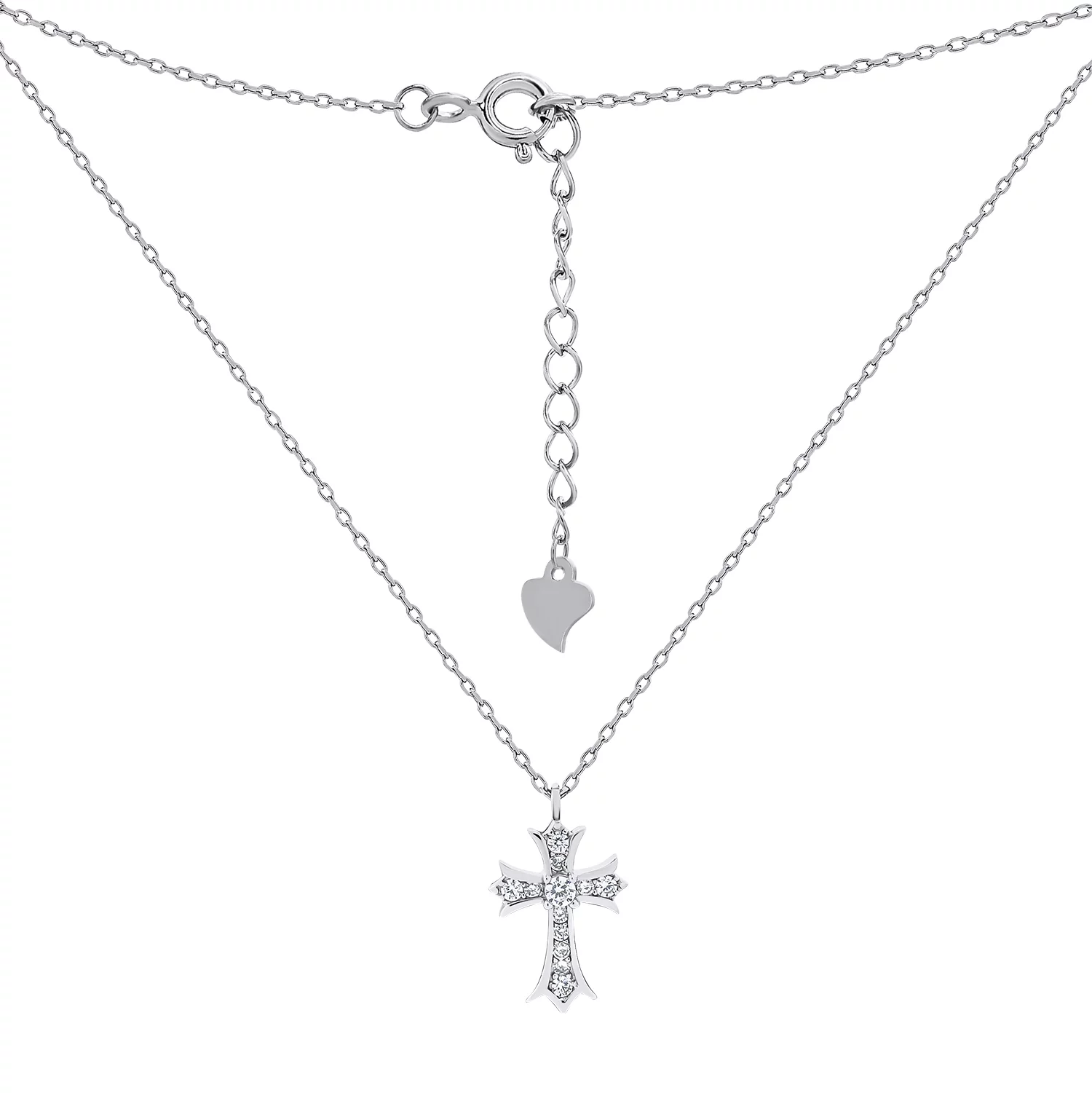 Цепочка с крестиком из серебра и фианитами якорное плетение - 1503831