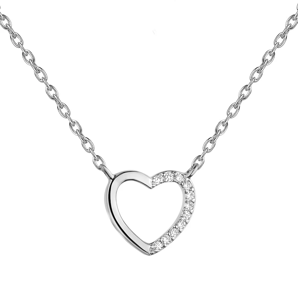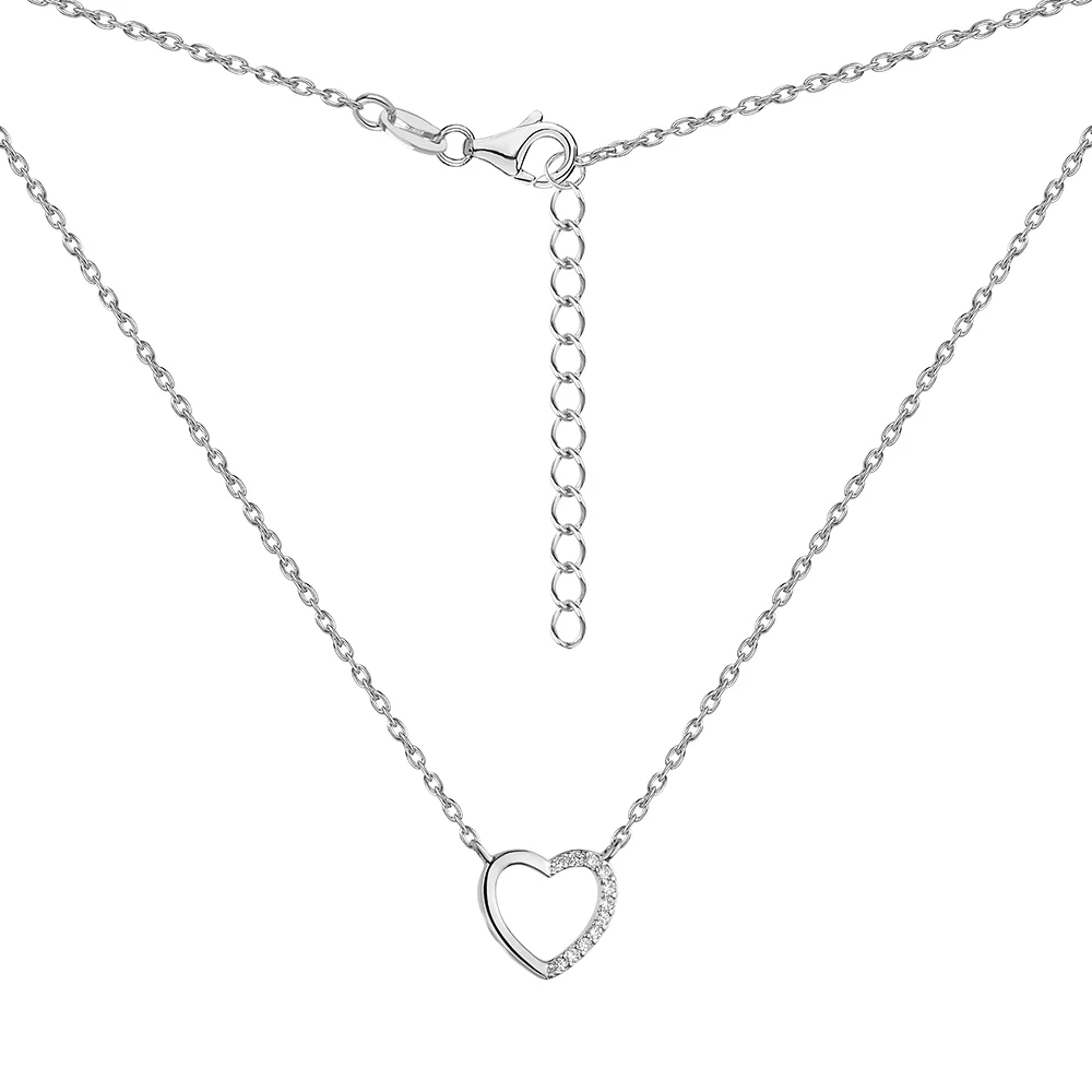 Колье из серебра «Сердечко» с дорожкой фианитов плетение якорное - 1531483