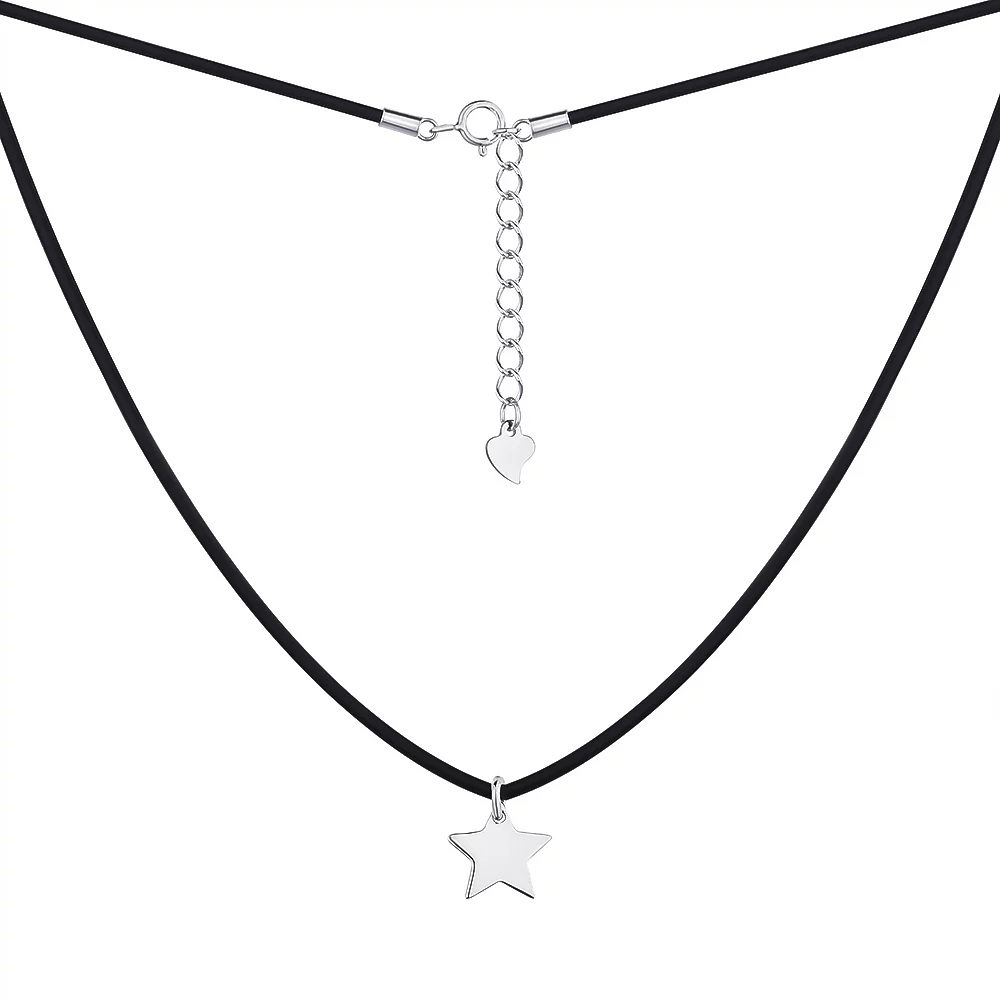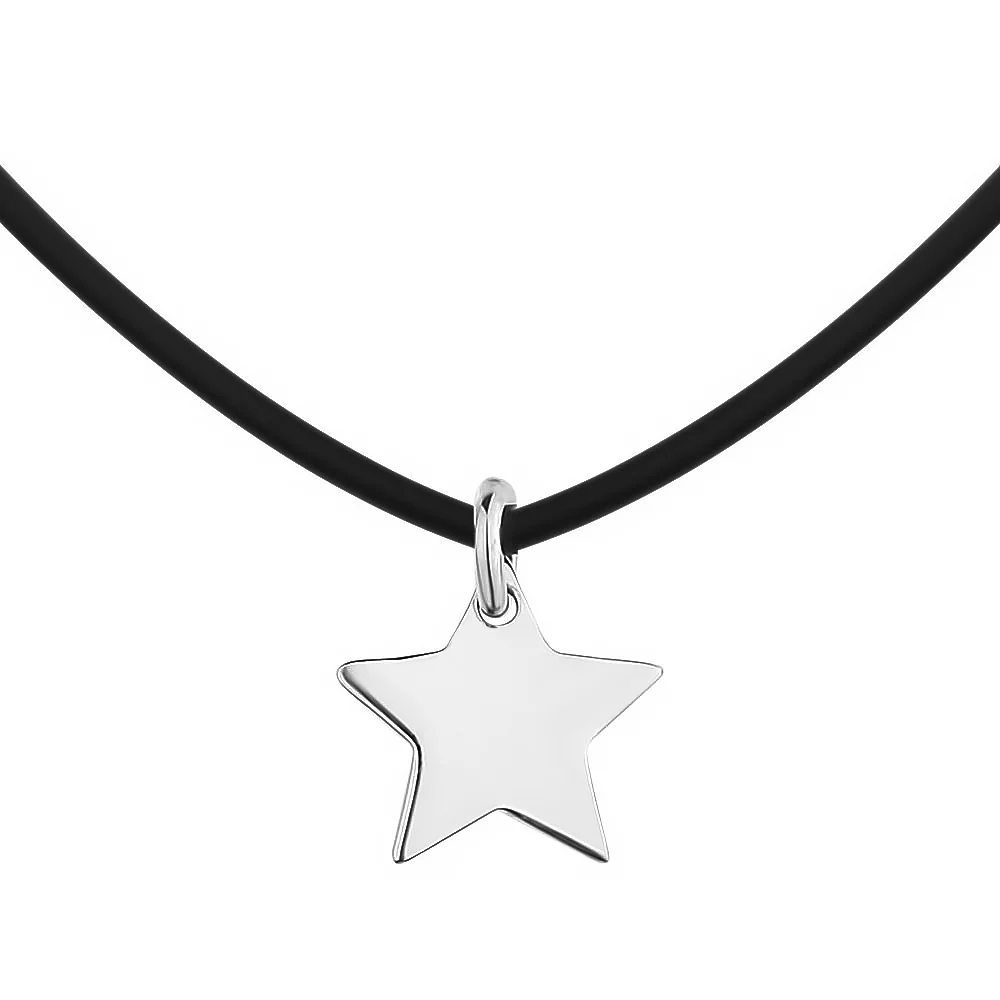 Колье каучуковое с серебряной подвеской Звезда - 1515131