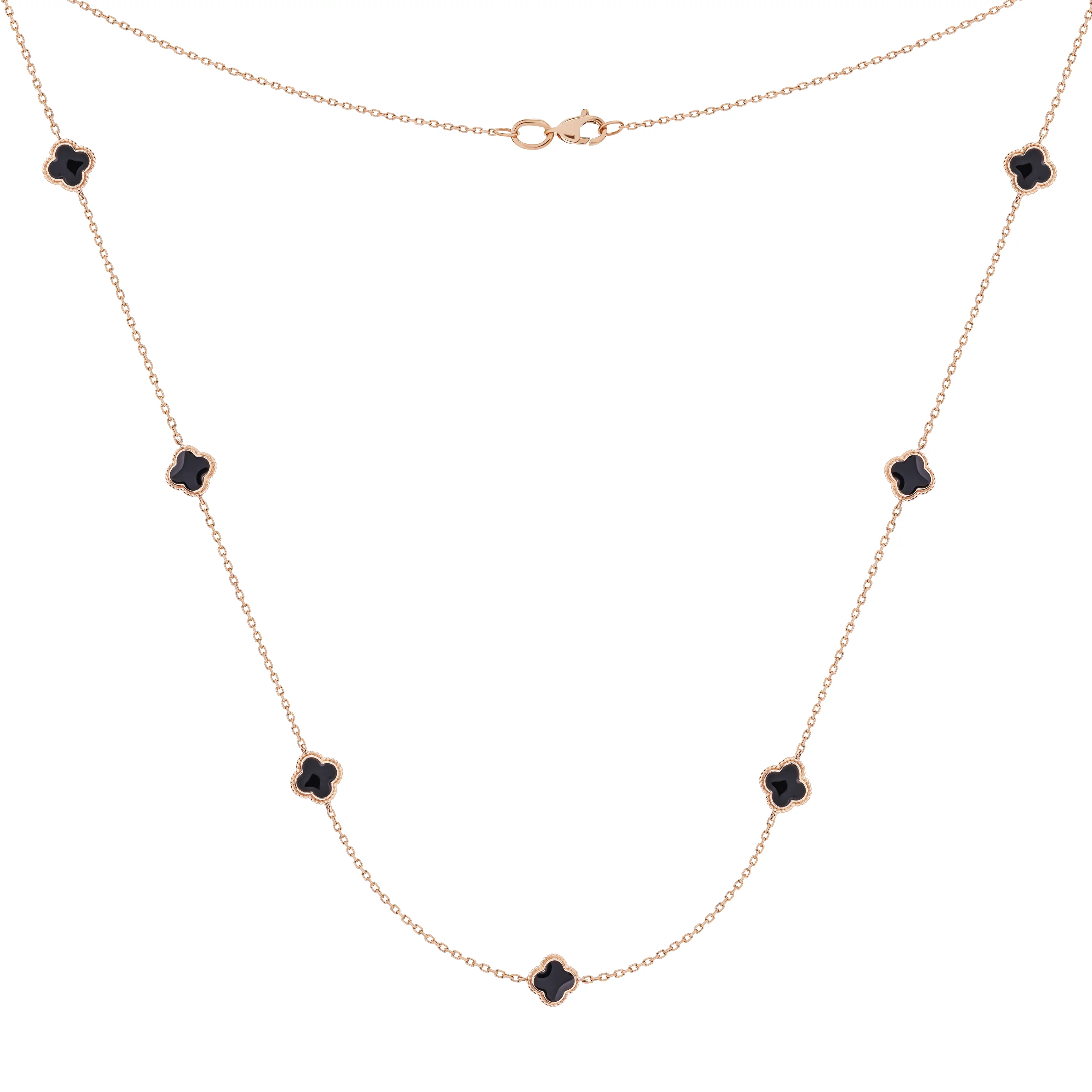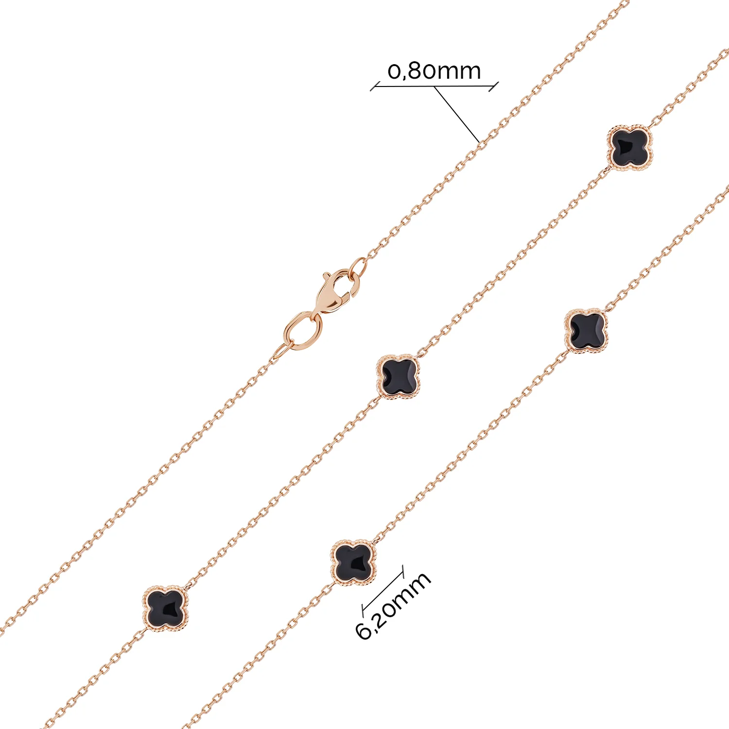 Колье с подвесами с ониксом из красного золота "Клевер" в якорном плетении - 1747985