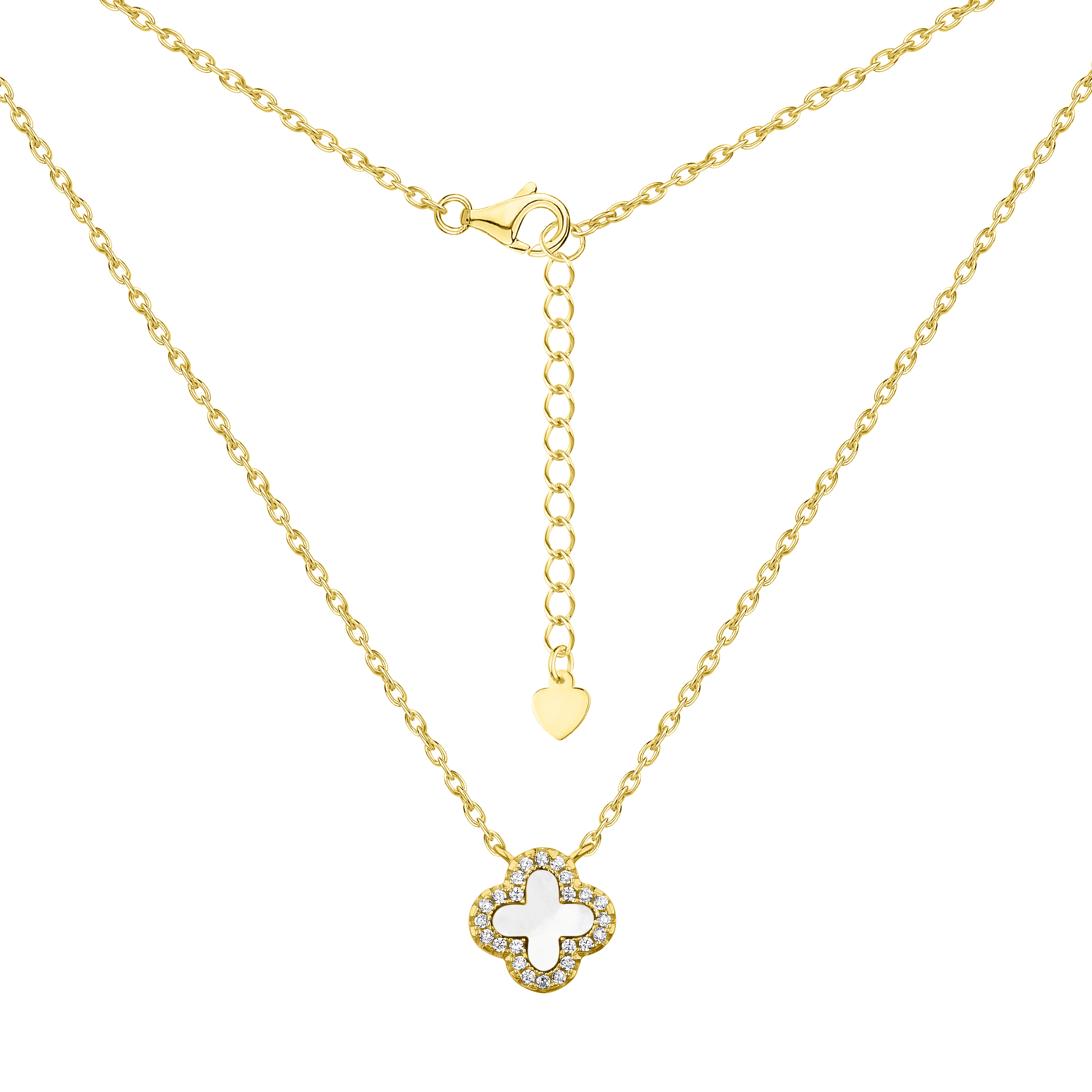 Серебряное колье с подвесом "Клевер" с перламутром з фианитами и якорным плетением - 1935221