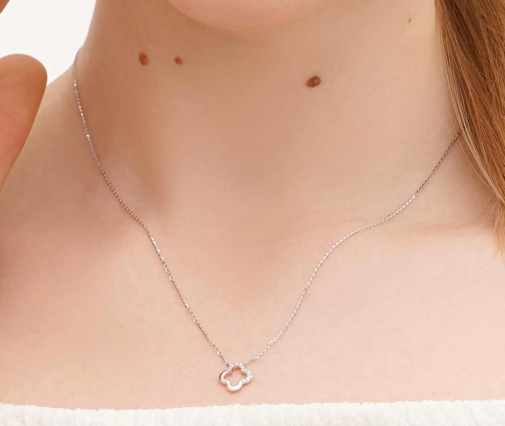 Цепочки с подвеской "Клевер" из белого золота с фианитами в якорном плетении - 1657679