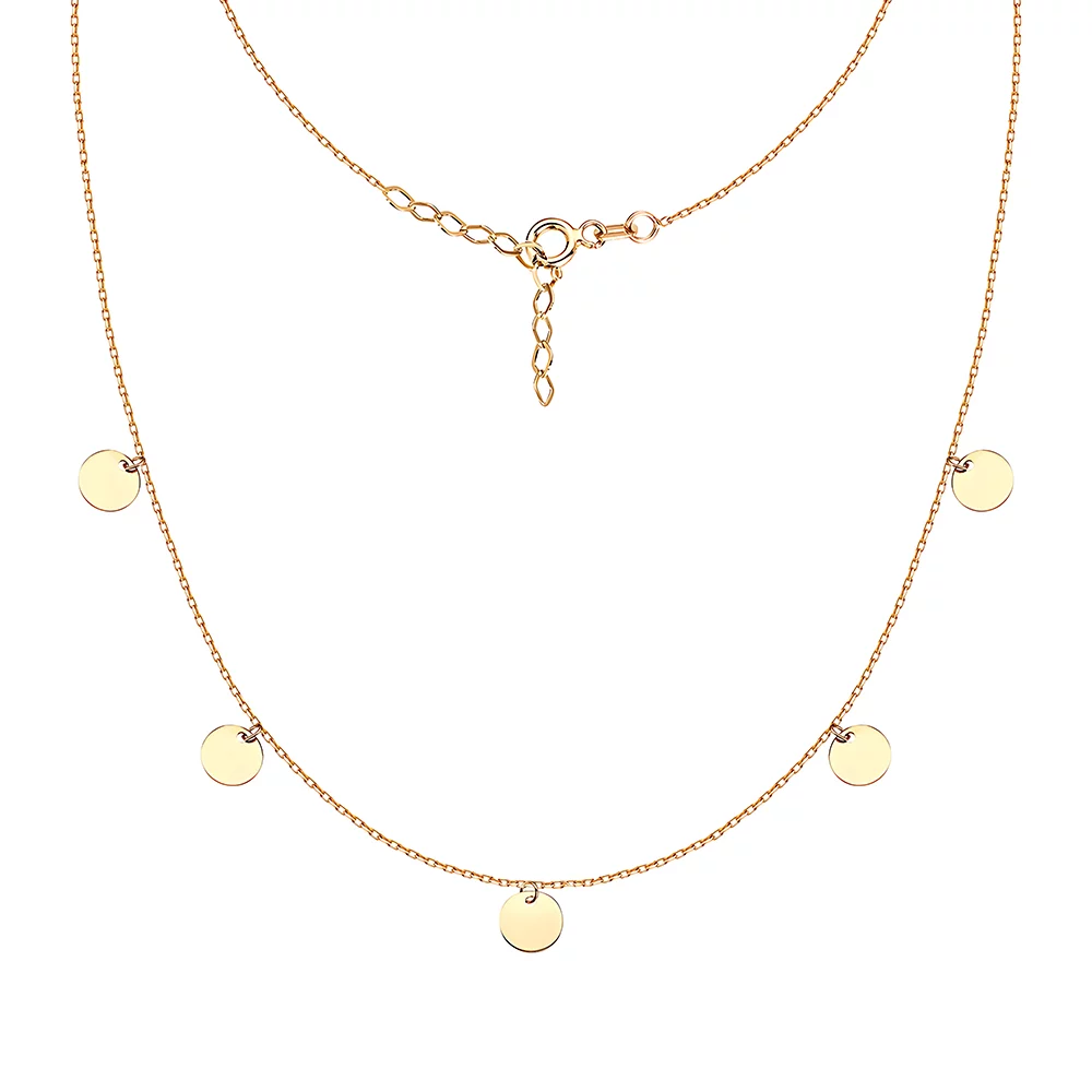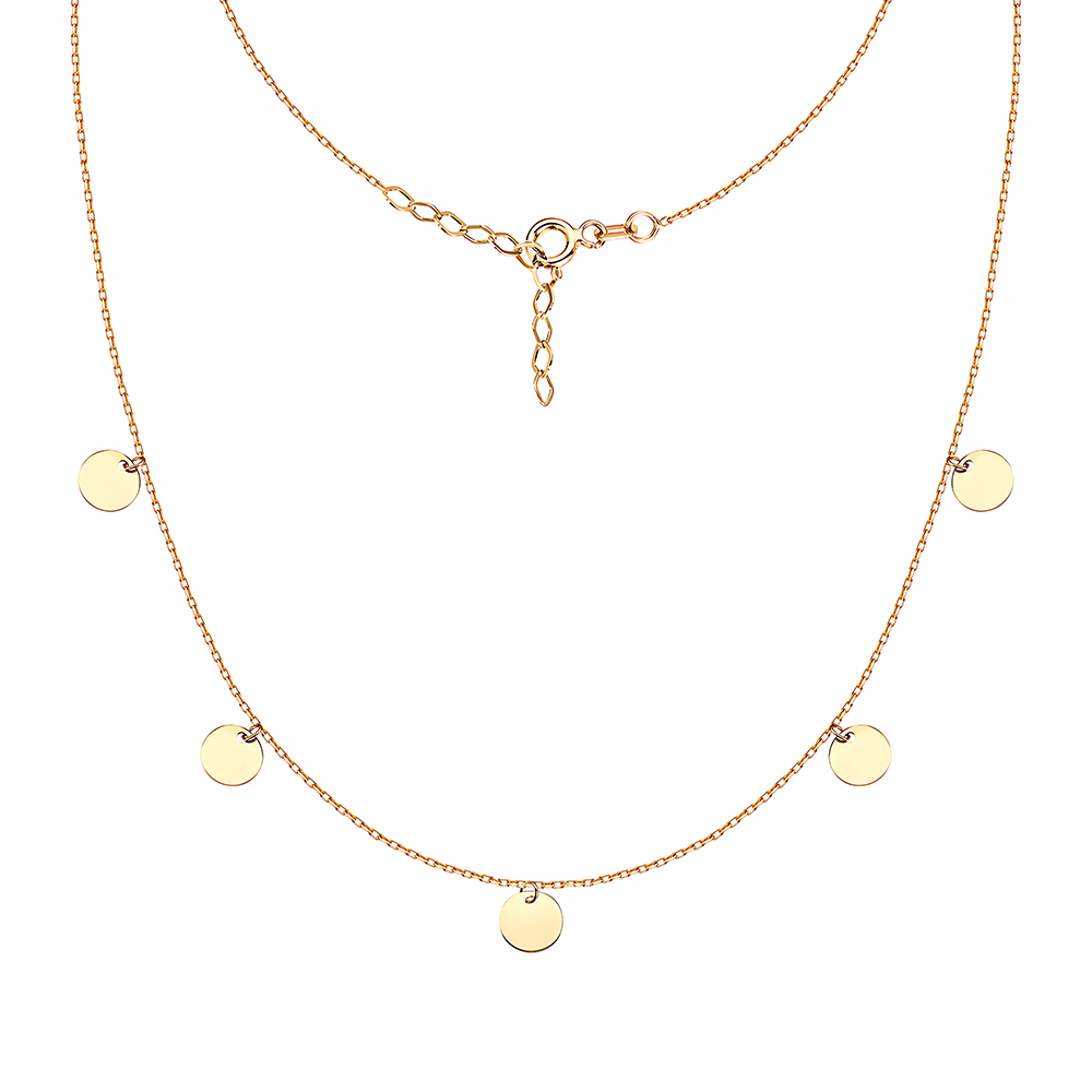 Колье "Монеты" из лимонного золота с подвесками якорное плетение - 1531785