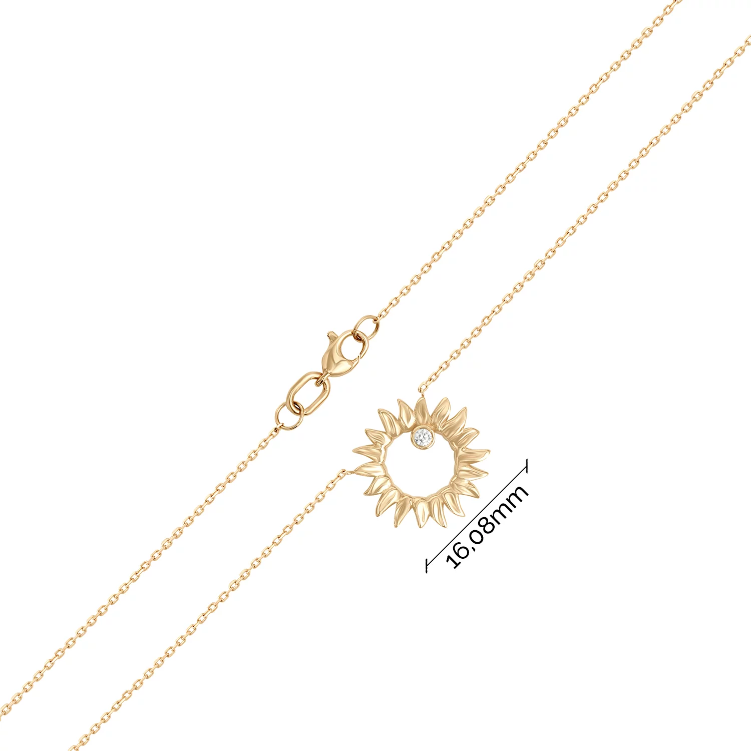 Цепочка с подвесом "Круг" из красного золота с фианитами плетение якорь - 1748054