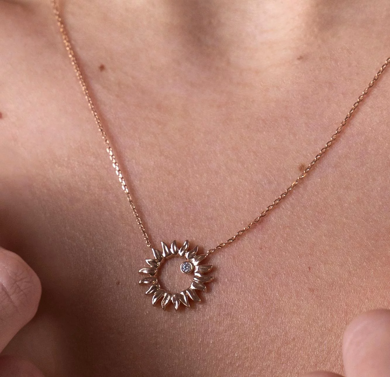 Цепочка с подвесом "Цветочек" из красного золота с фианитом плетение якорное - 1747928
