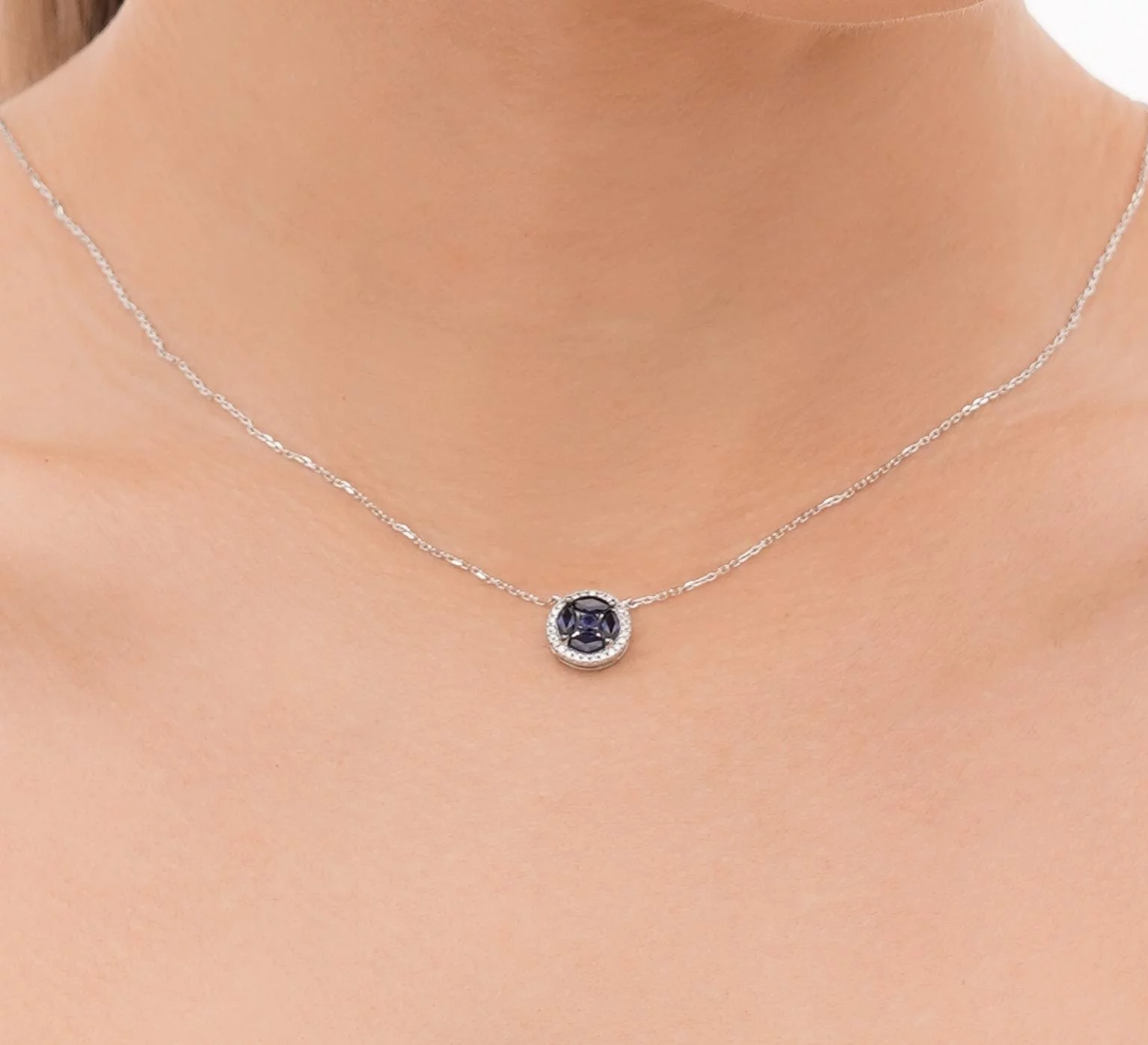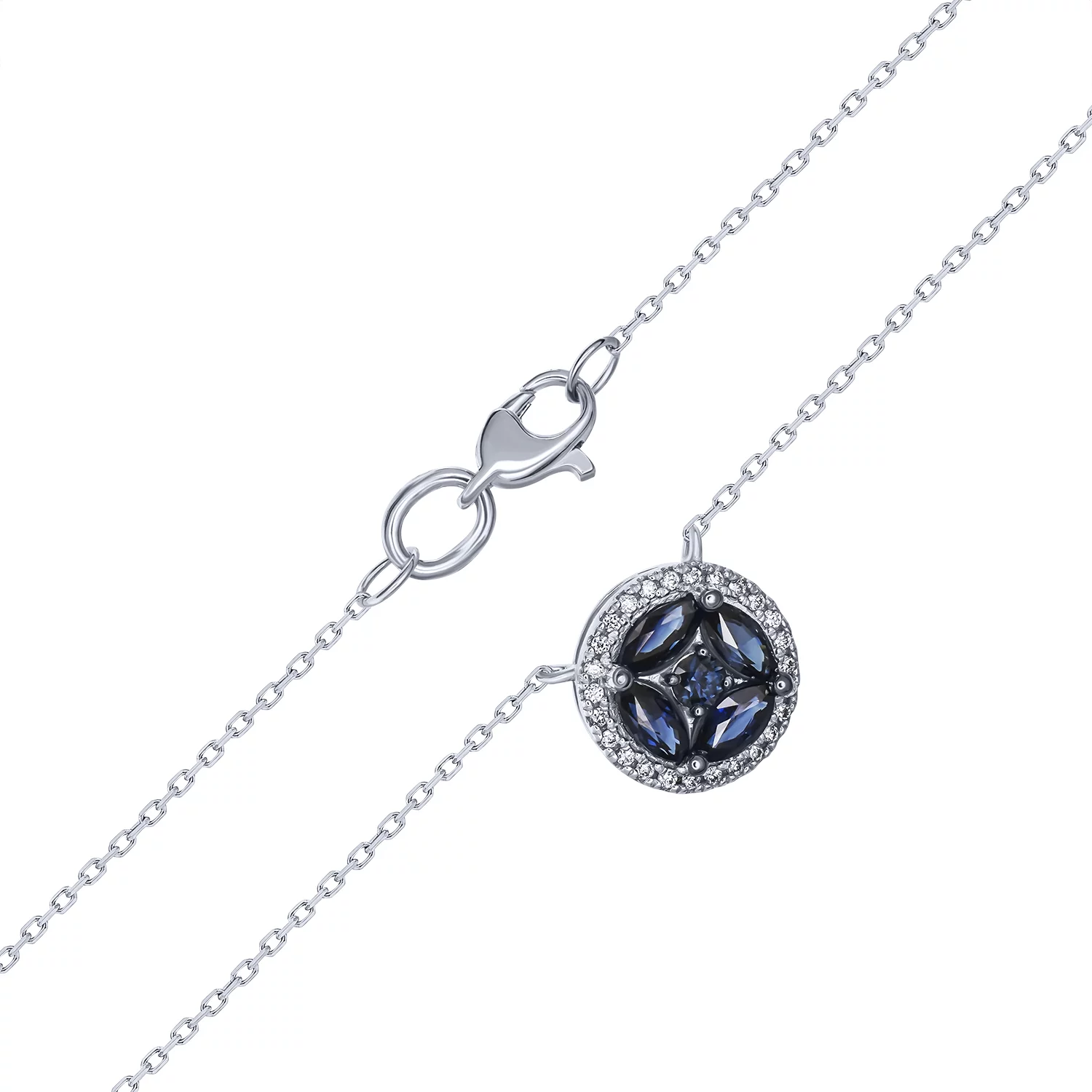 Стильное колье с подвесом из белого золота "Цветок" с якорным плетением и бриллиантами - 1960720
