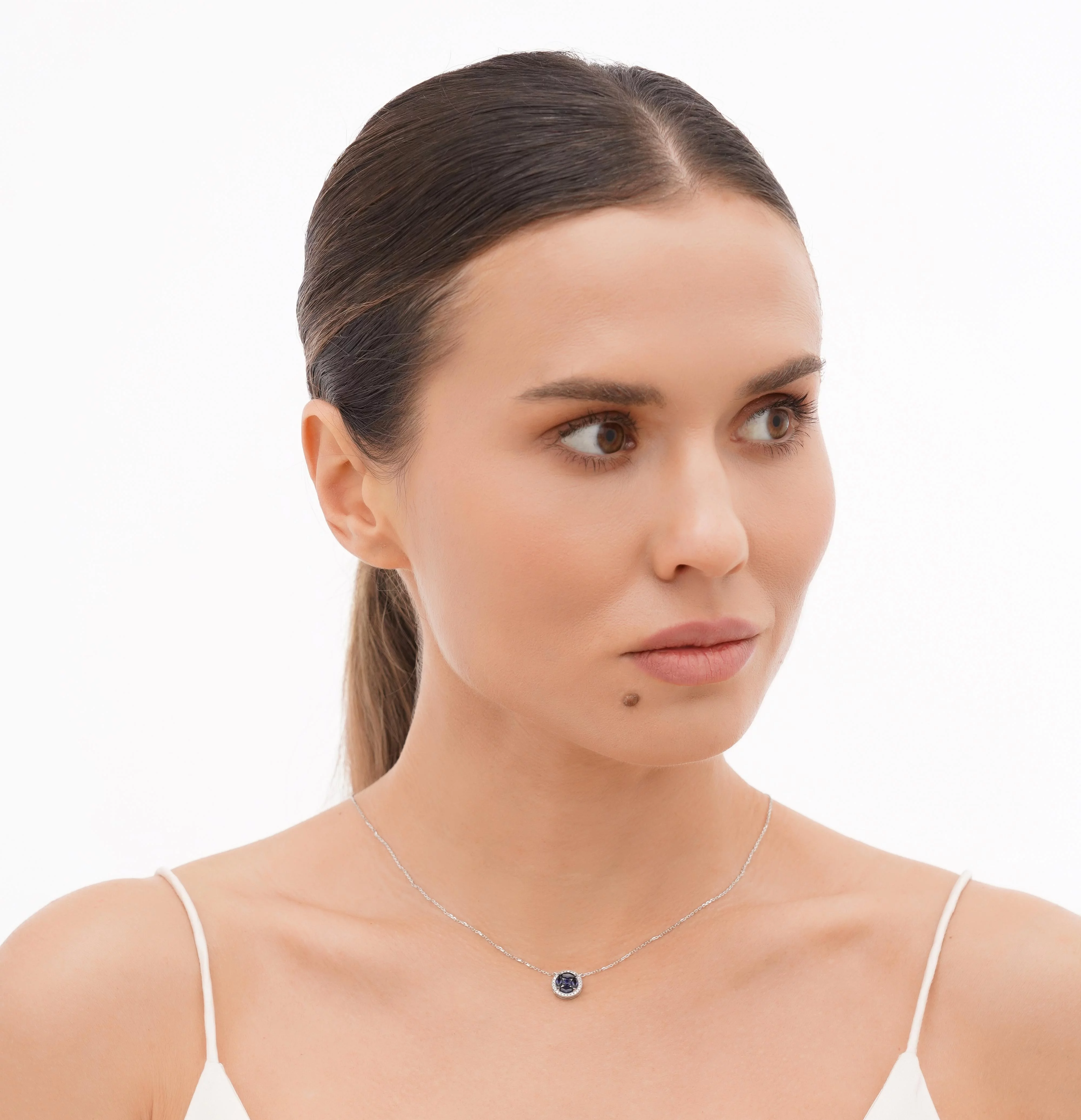 Стильное колье с подвесом "Круг" в белом золоте с бриллиантами и рубинами с плетением якорь - 1965131