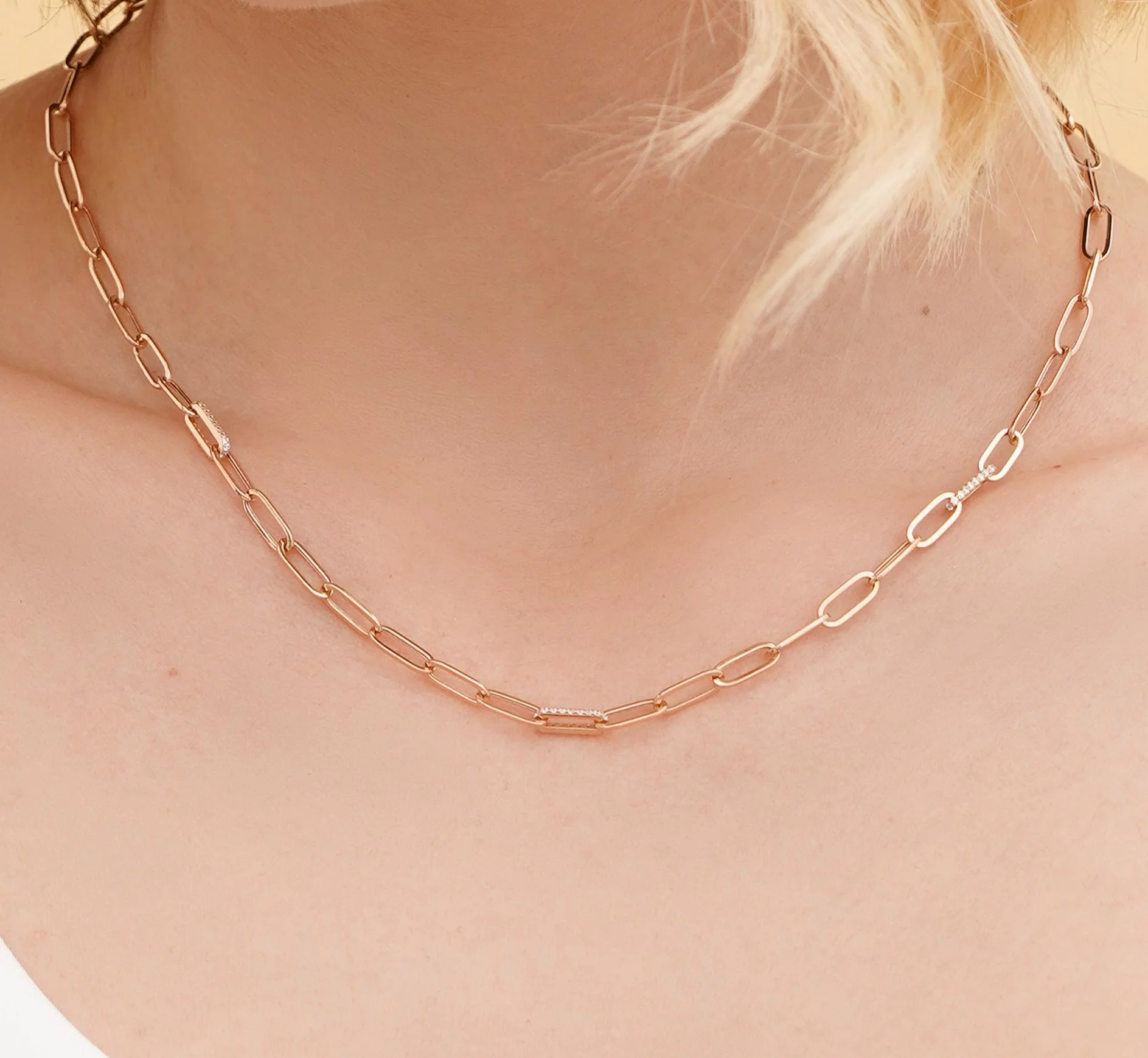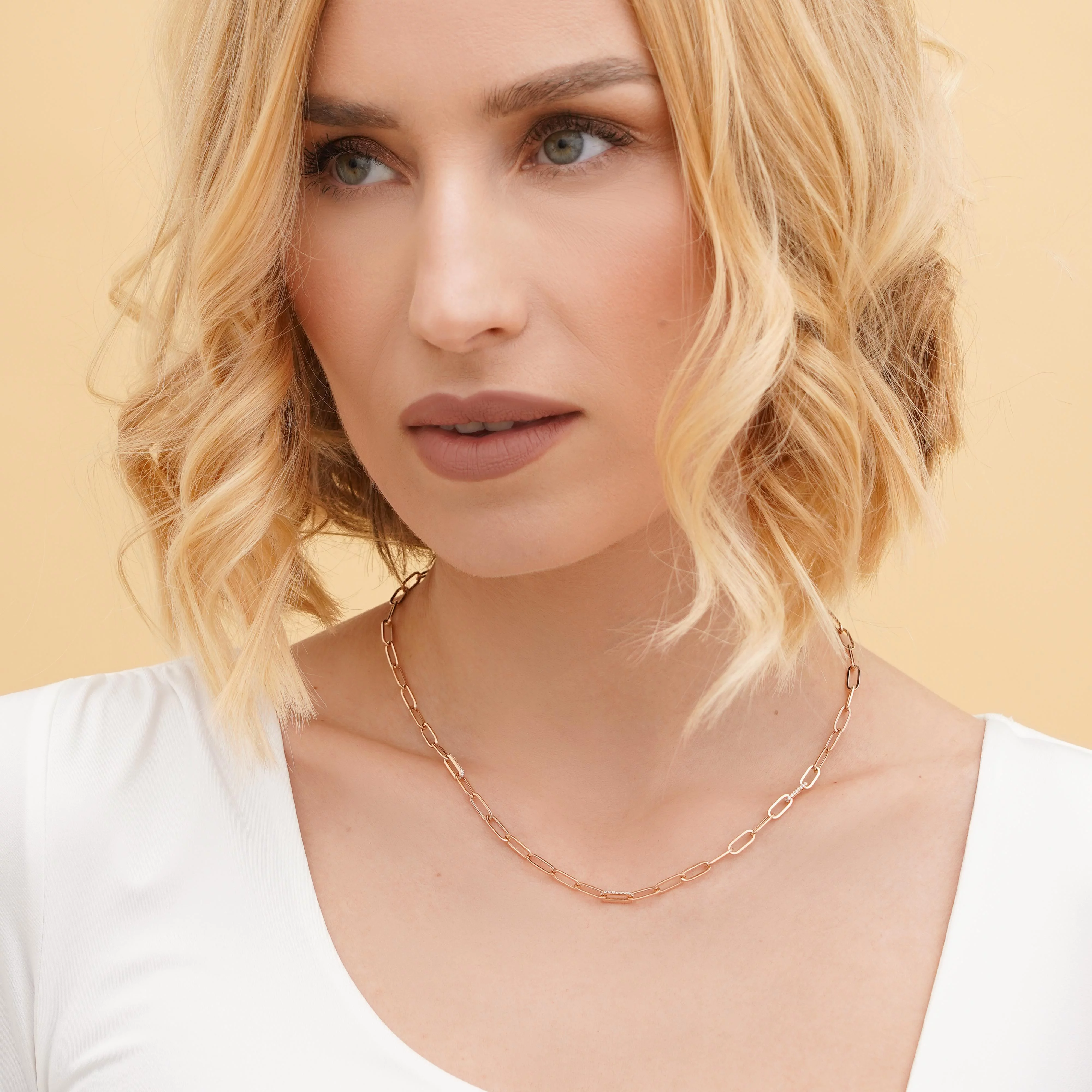 Колье-галстук из белого золота с якорным плетением и алмазной гранью - 1858234