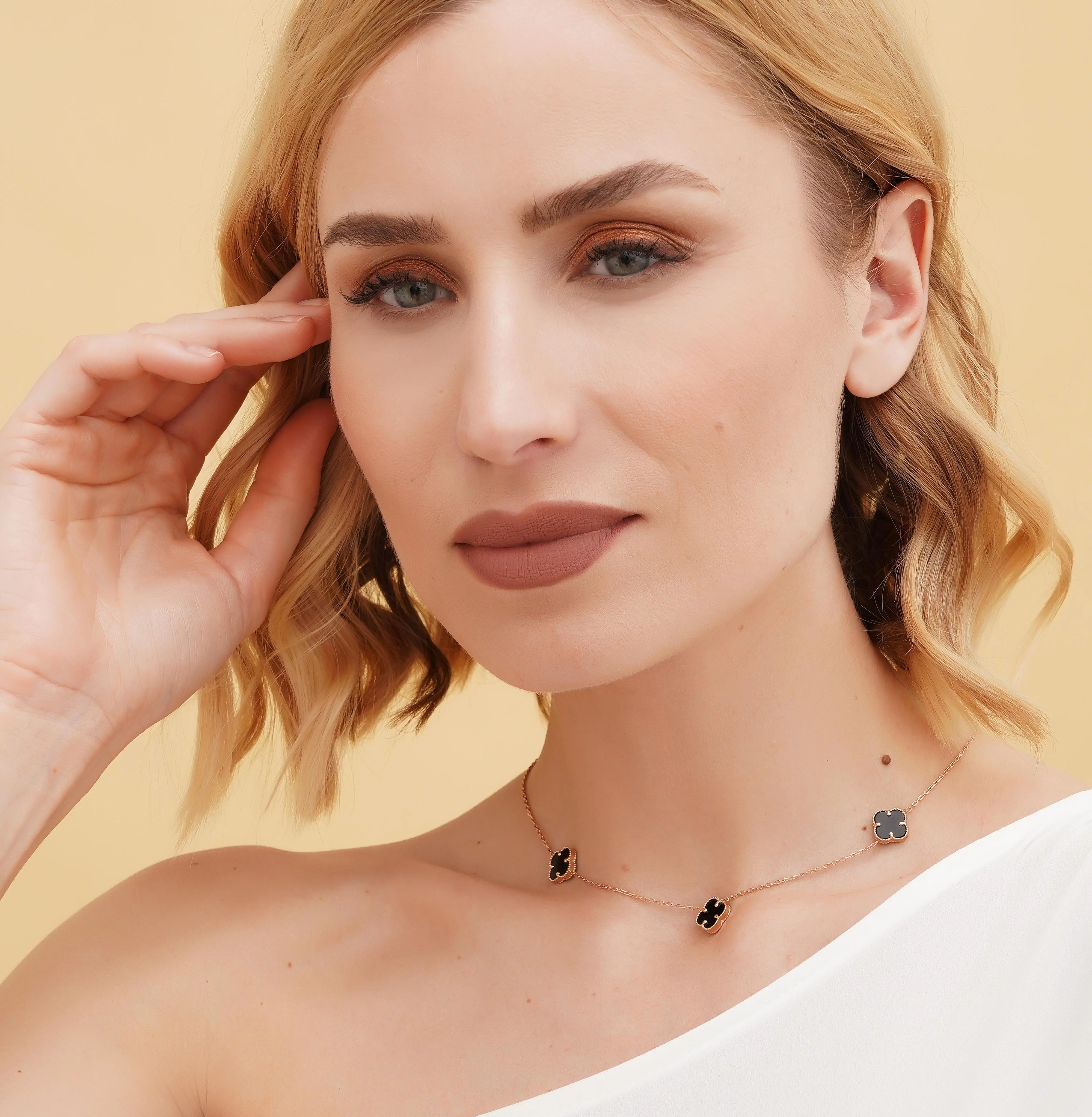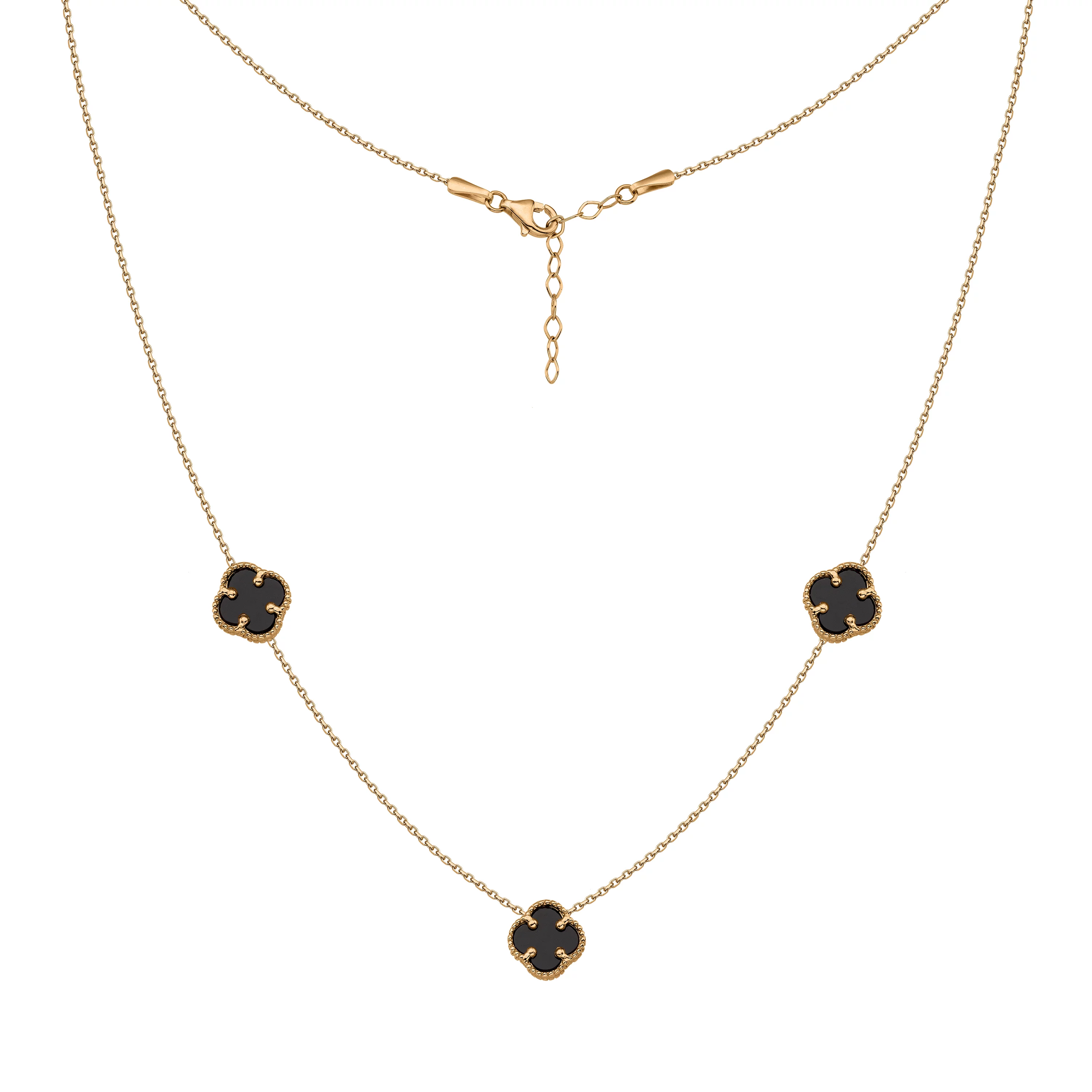 Колье из красного золота с подвесами из оникса "Клевер" в якорном плетении - 1744970