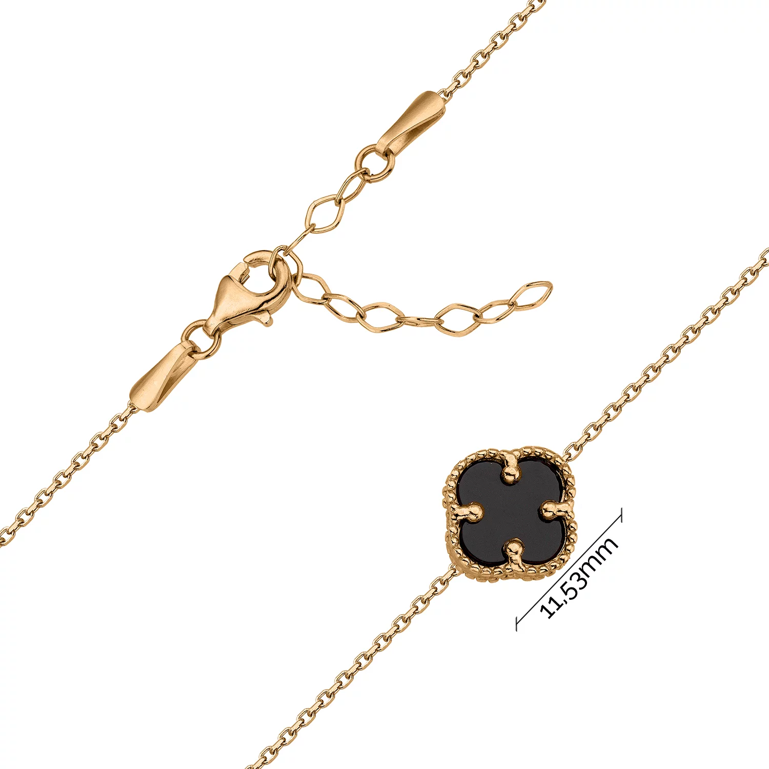Колье с подвесом "Клевер" из красного золота с ониксом якорное плетение - 1824374