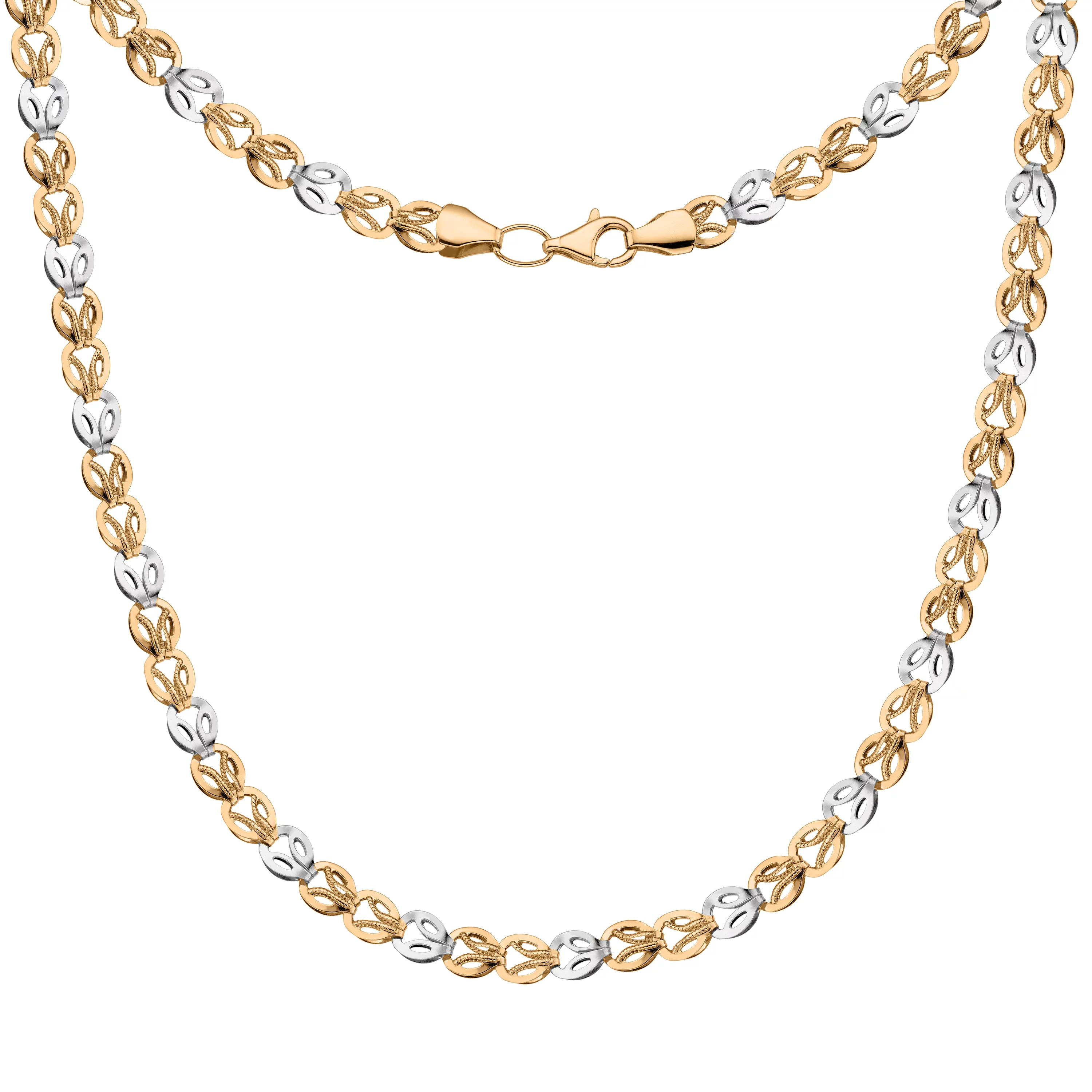 Колье из комбинированного золота плетение ролекс с алмазной гранью - 961703