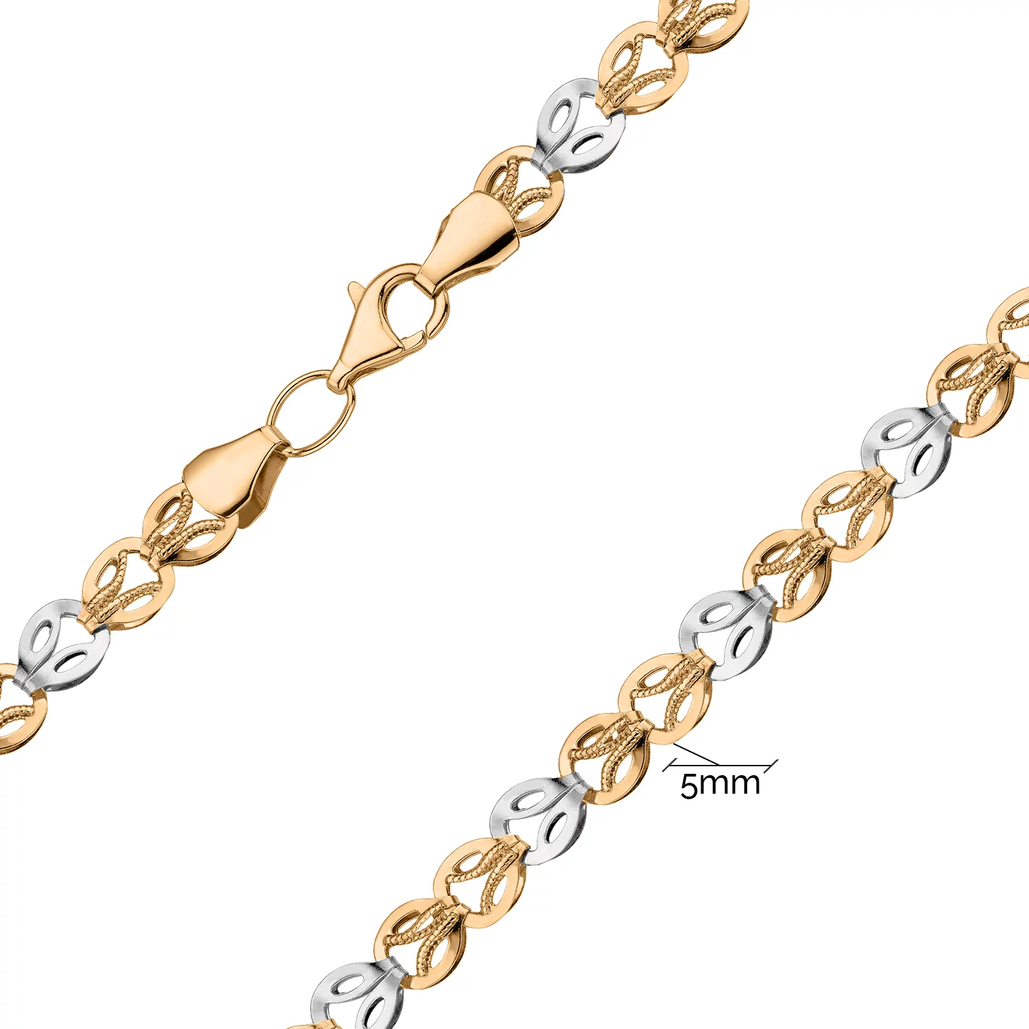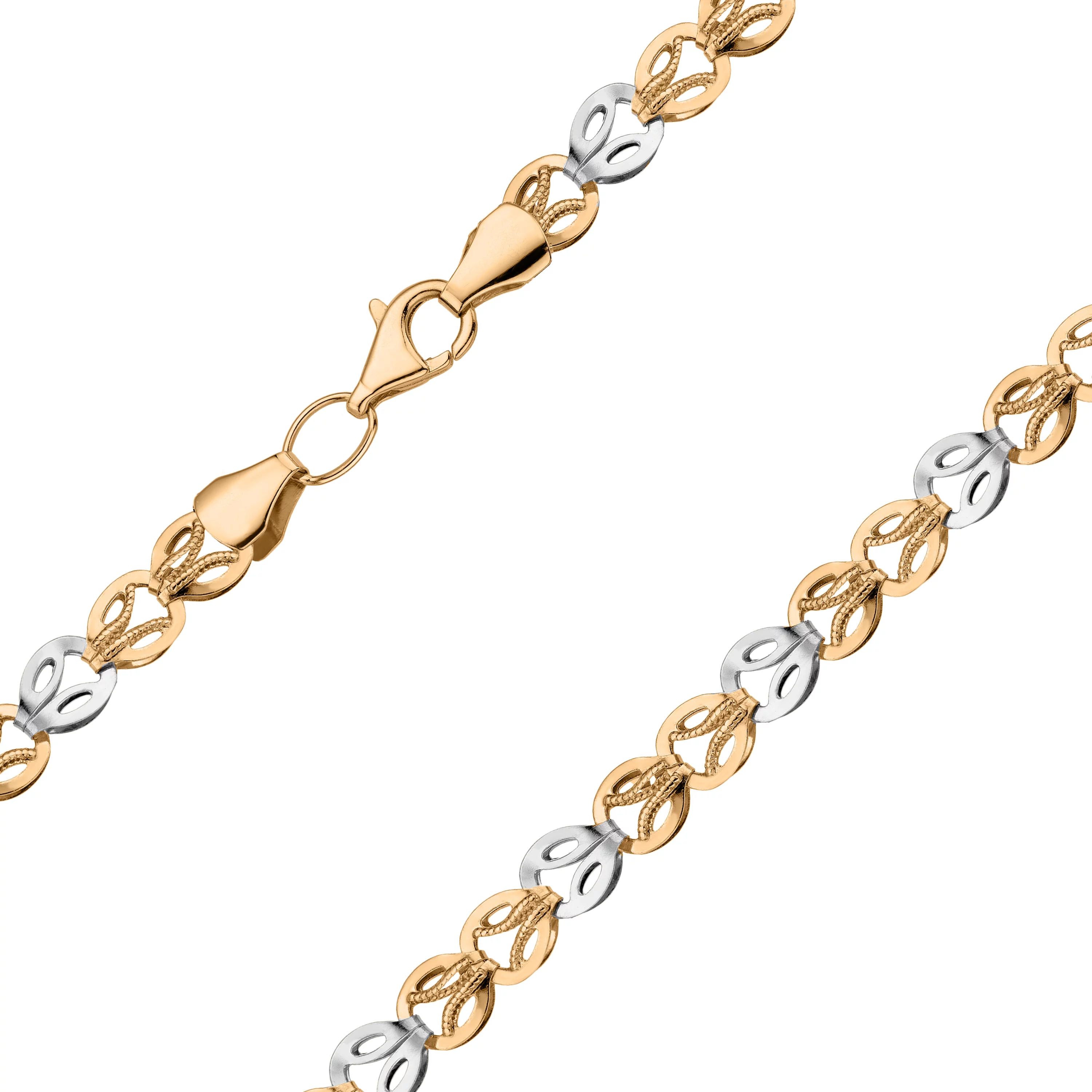 Колье из комбинированного золота с плетением ролекс и алмазной гранью - 960170
