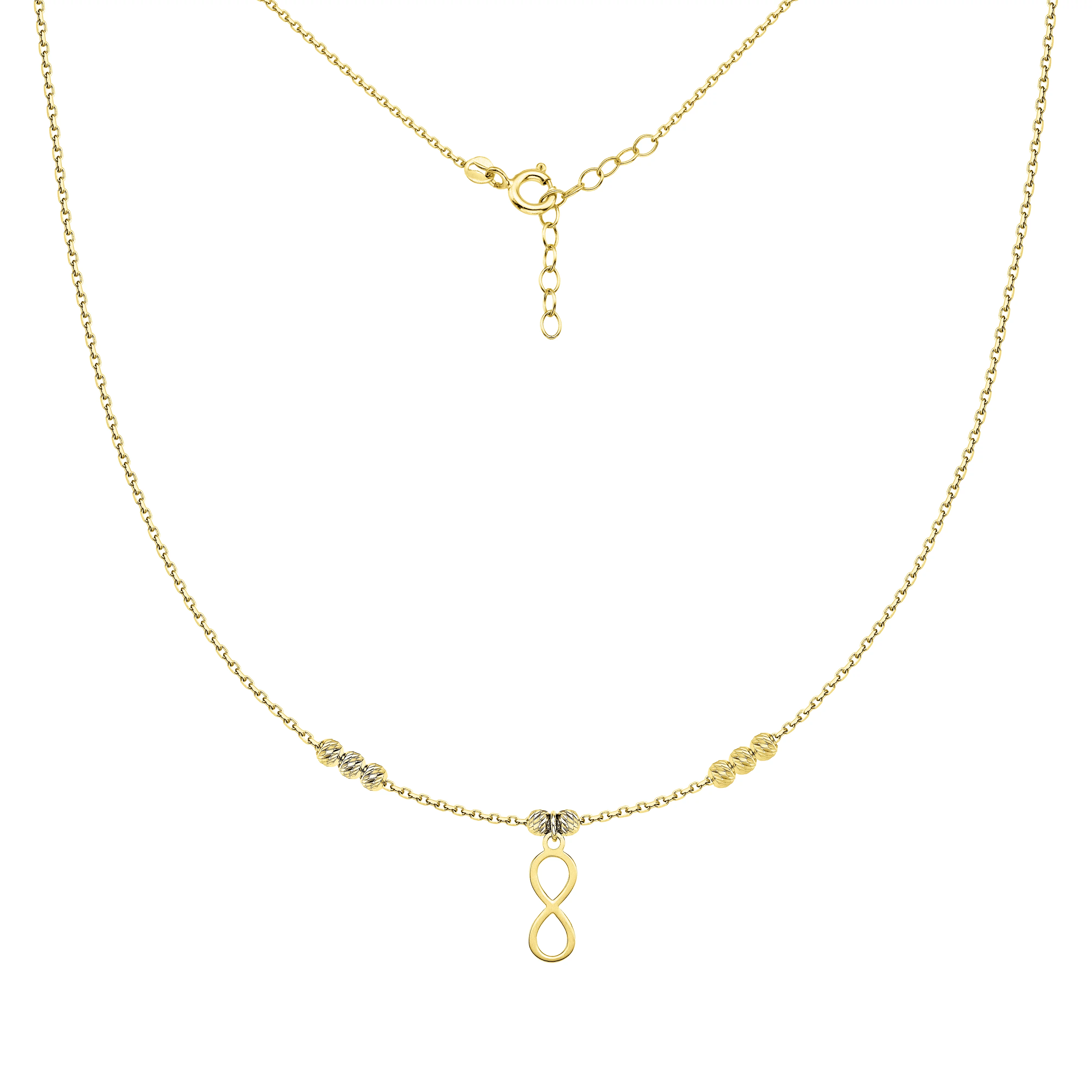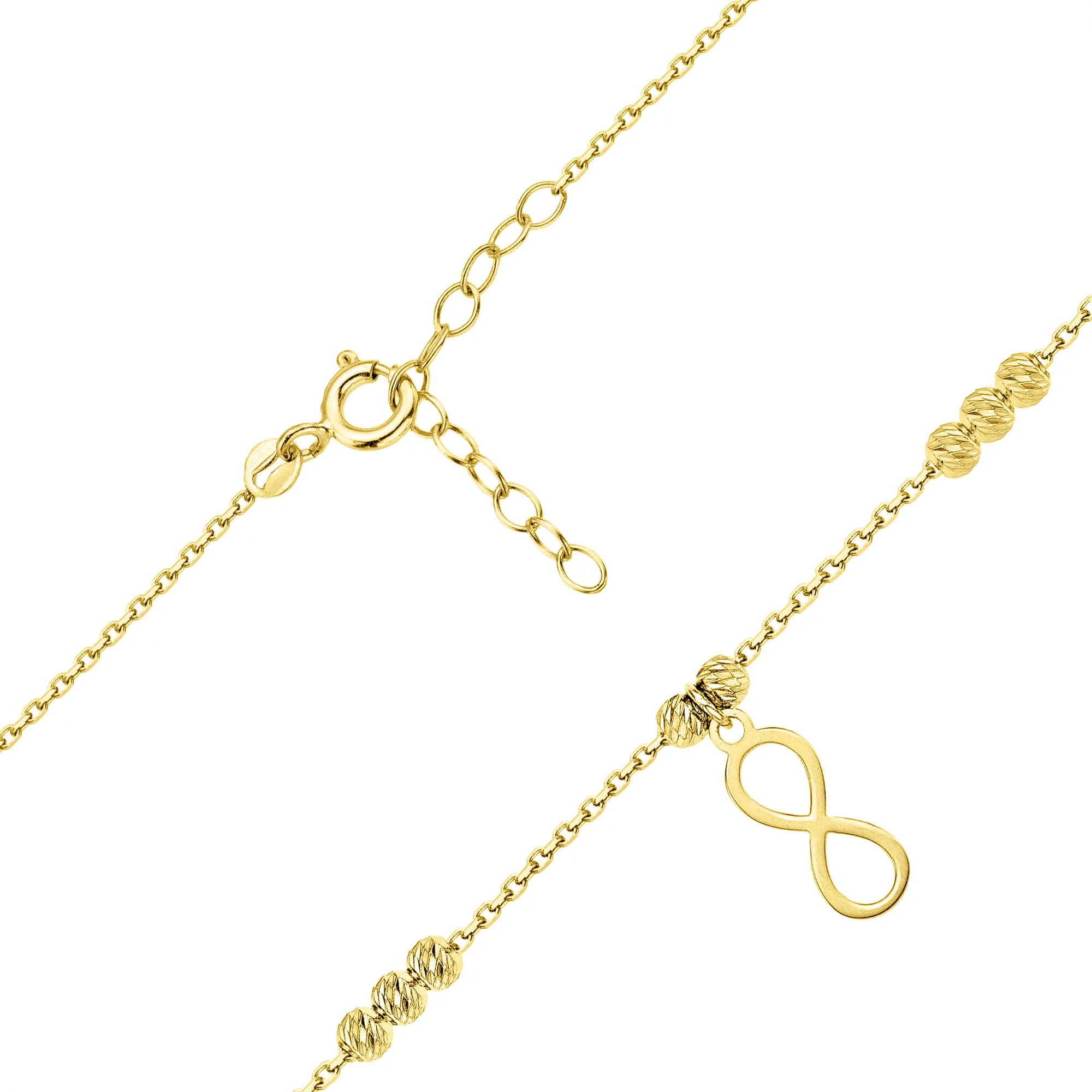 Колье из лимонного золота с подвесом "Бесконечность" с шариками плетение якорь - 1824371