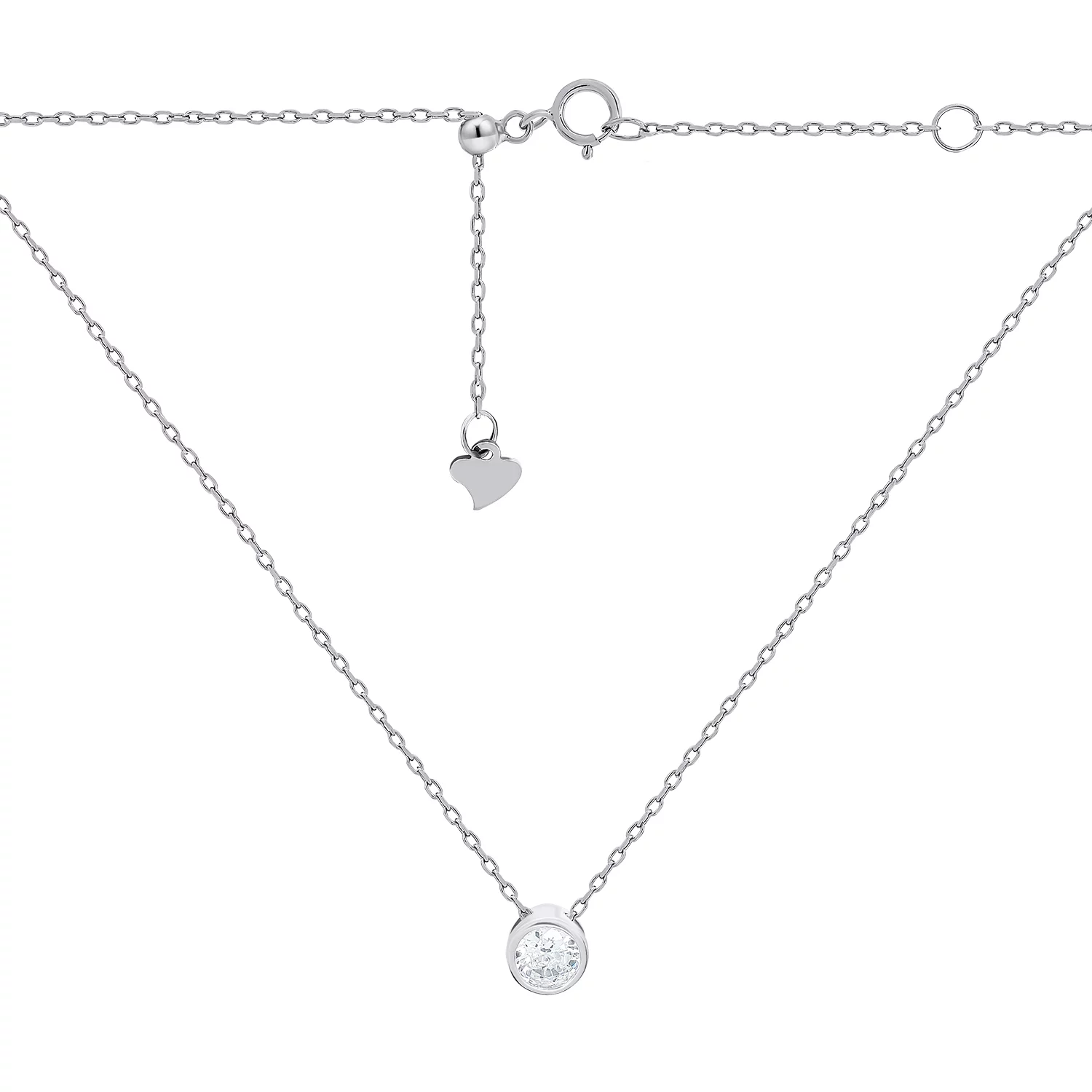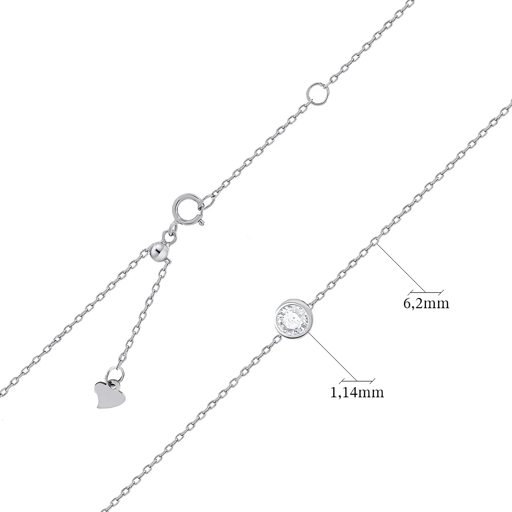 Цепочка с подвесом из белого золота с фианитом якорное плетение - 1688575