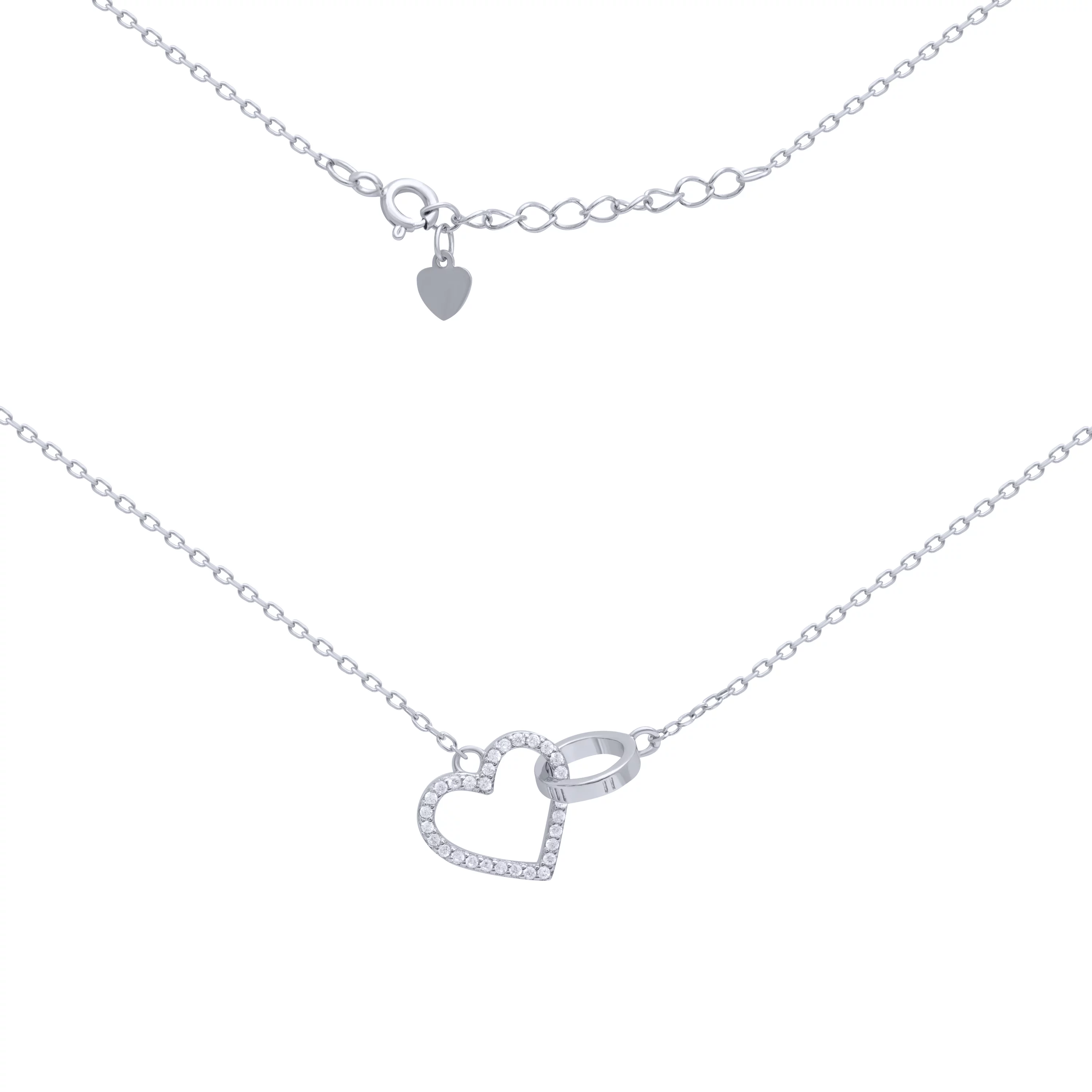 Элегантное колье из белого золота с подвеской "Сердце" с плетением шопард и якорь и фианитами - 1878821