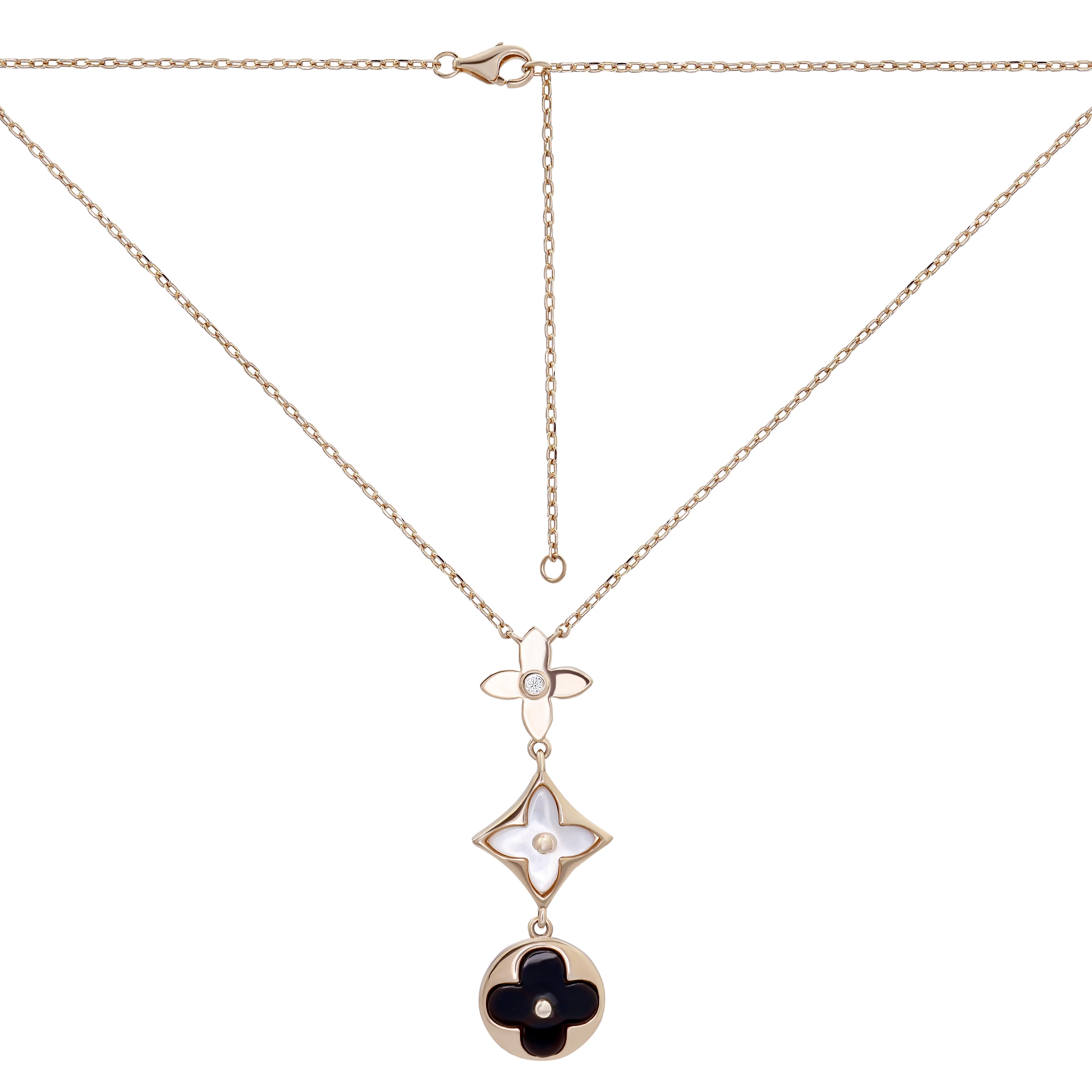 Колье серебряное с позолотой, ониксом, перламутром и цирконием - 960913