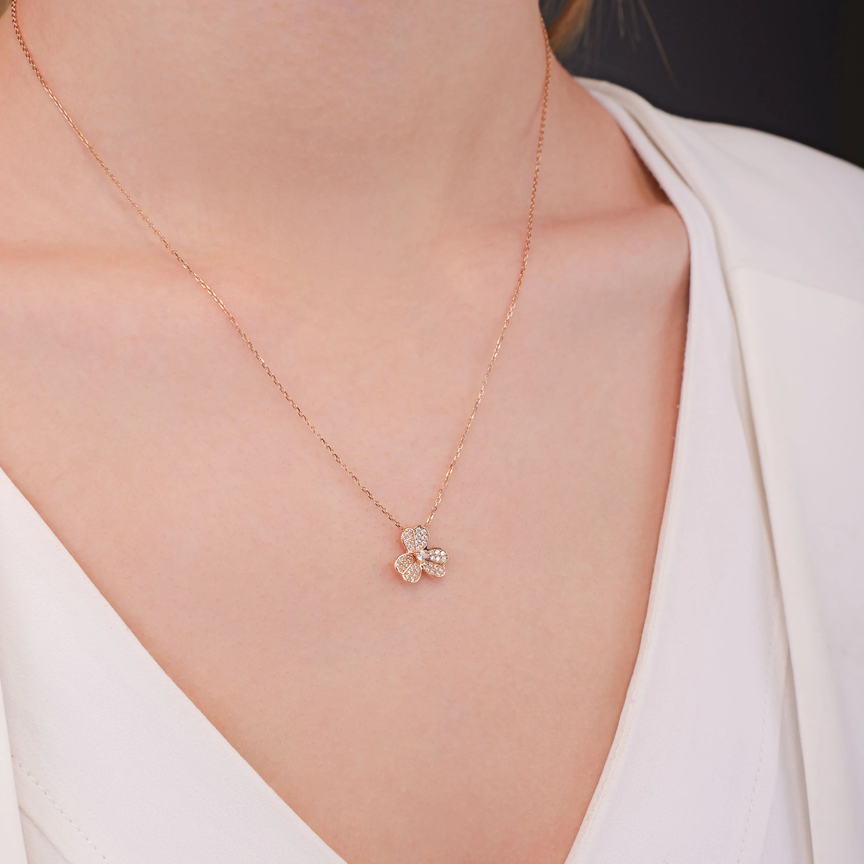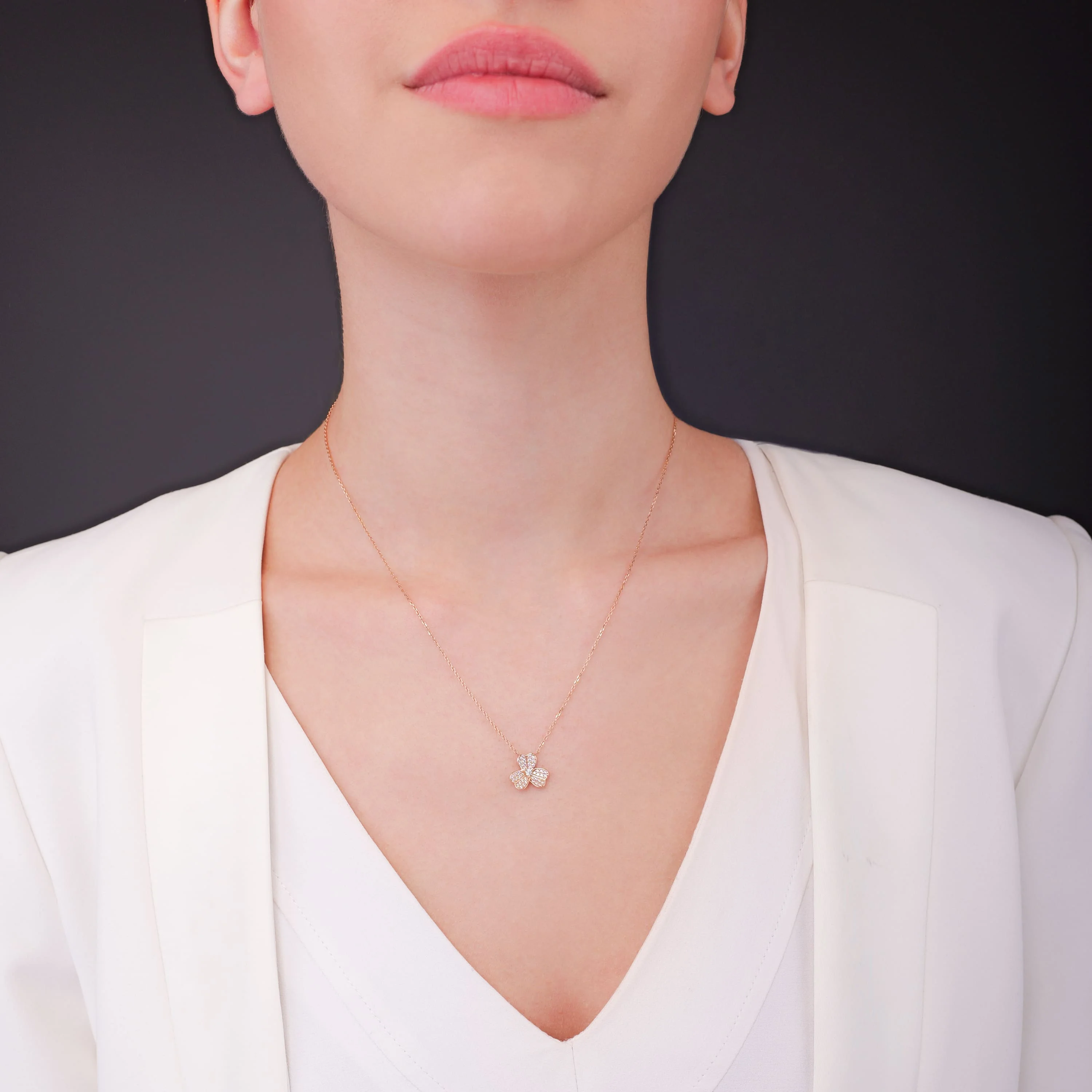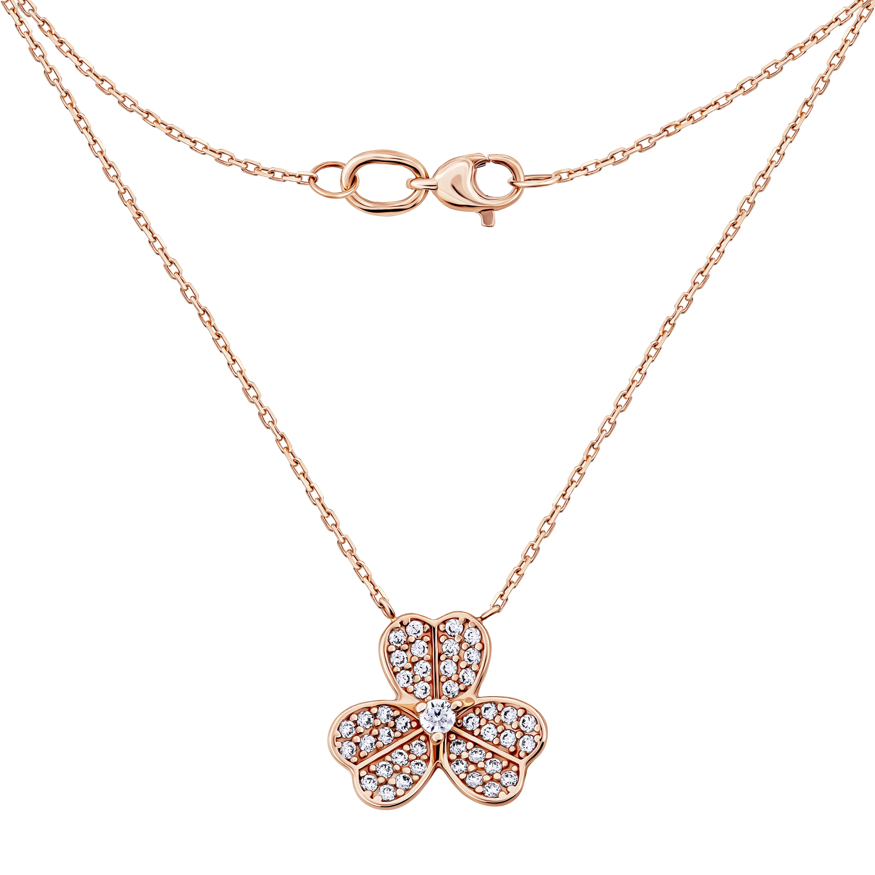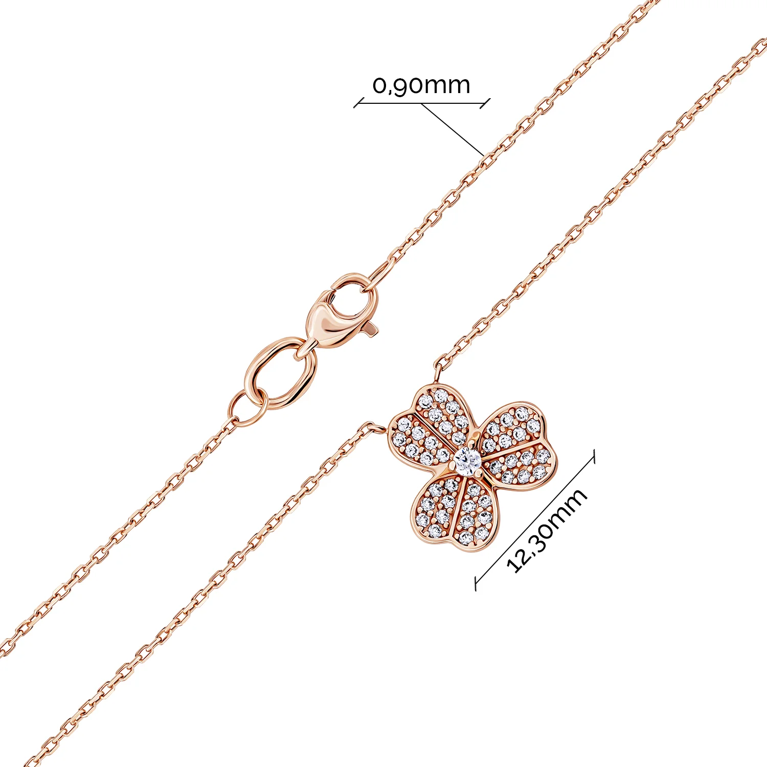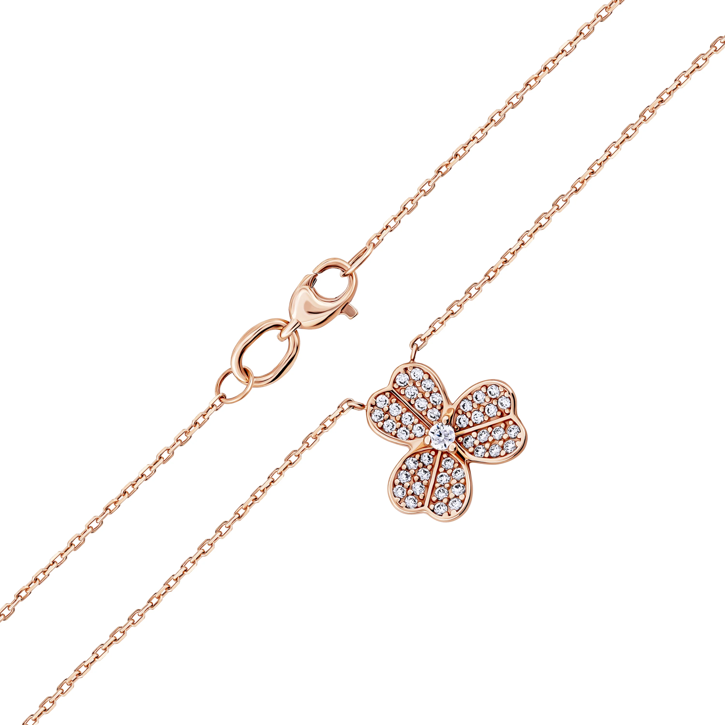 Колье с подвесом "Цветок" с россыпью фианитов в красном золоте плетение якорь - 1987636