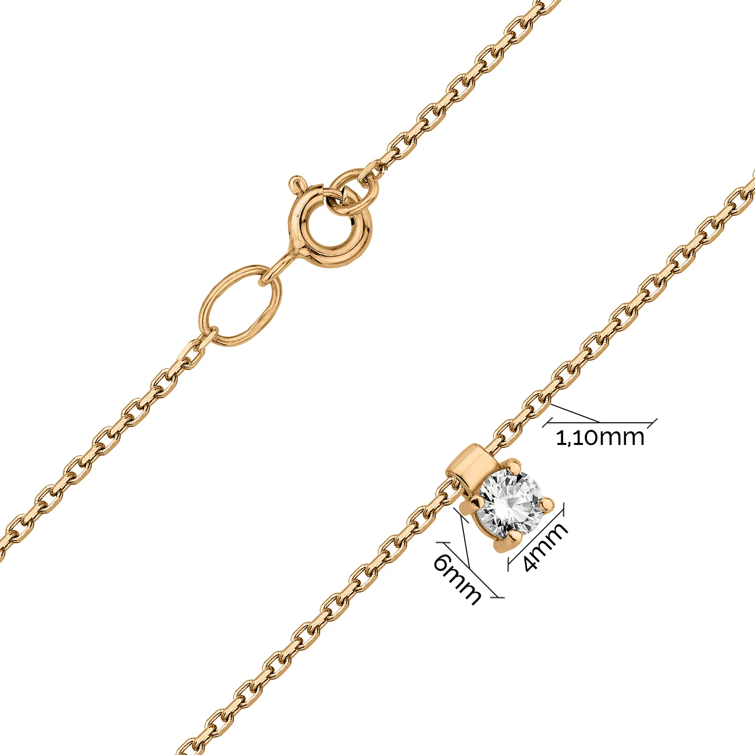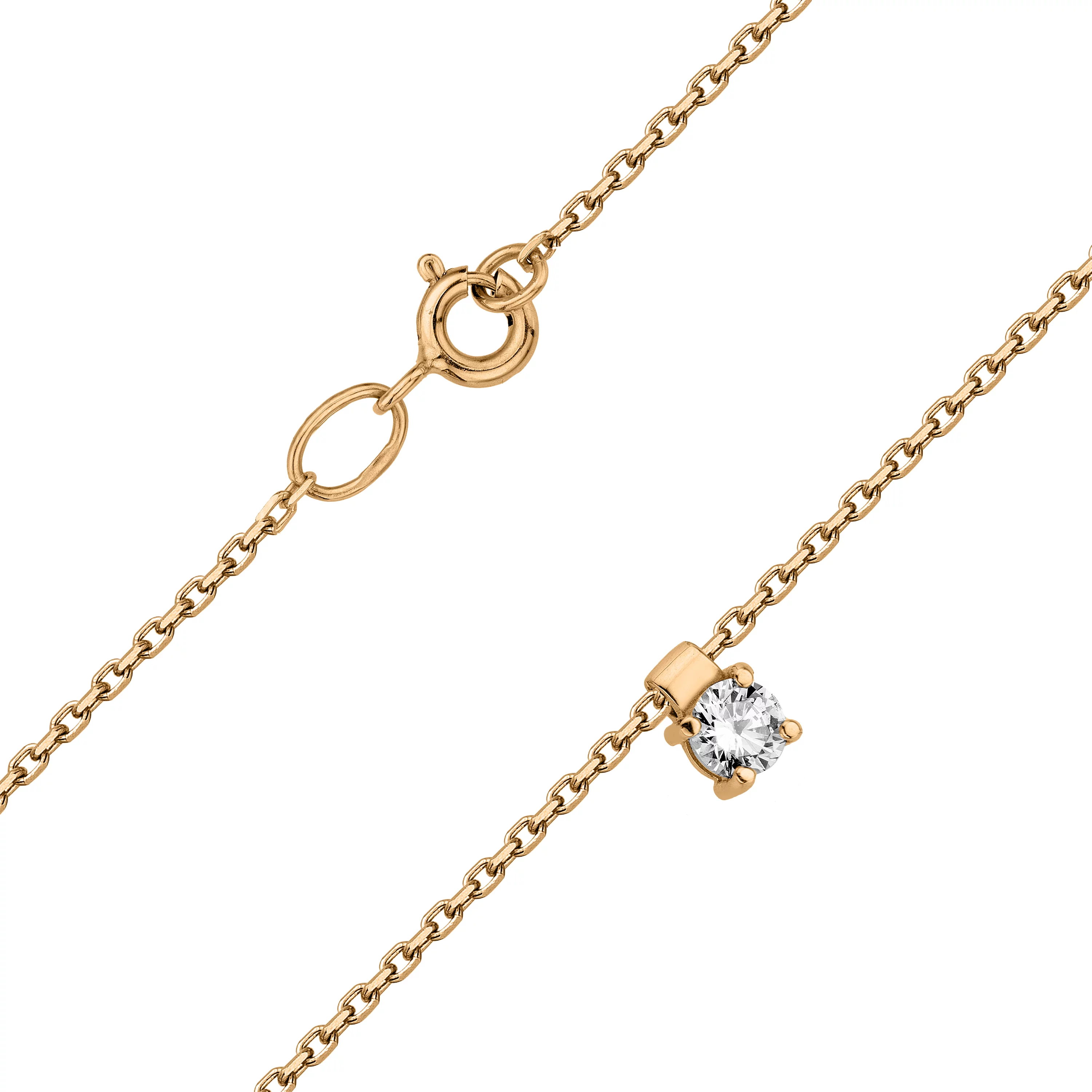 Цепочка с подвесом "Капля" из красного золота с фианитом плетение якорь - 1748053