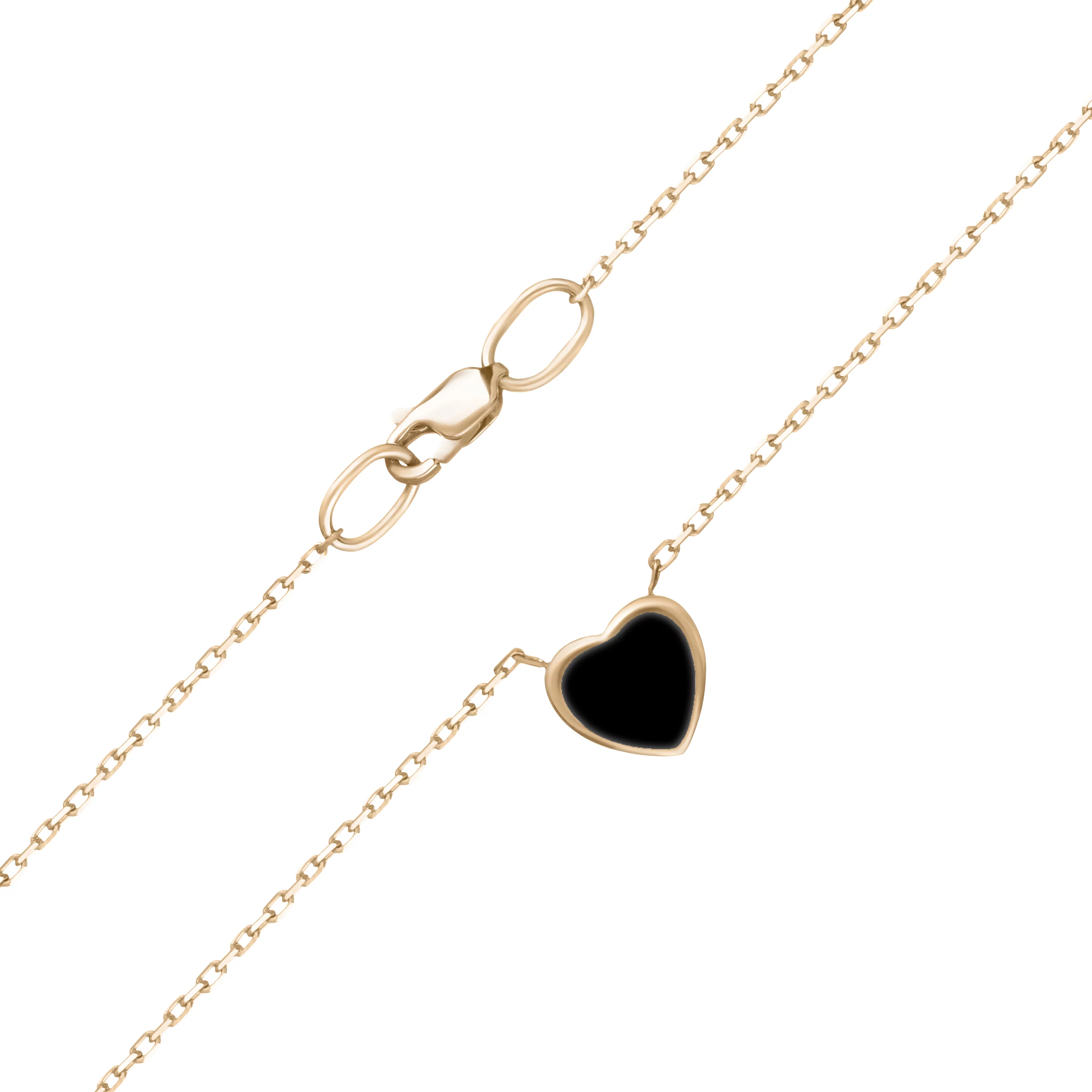 Цепочка из красного золота с подвеской "Сердце" с эмалью якорное плетение - 1745561