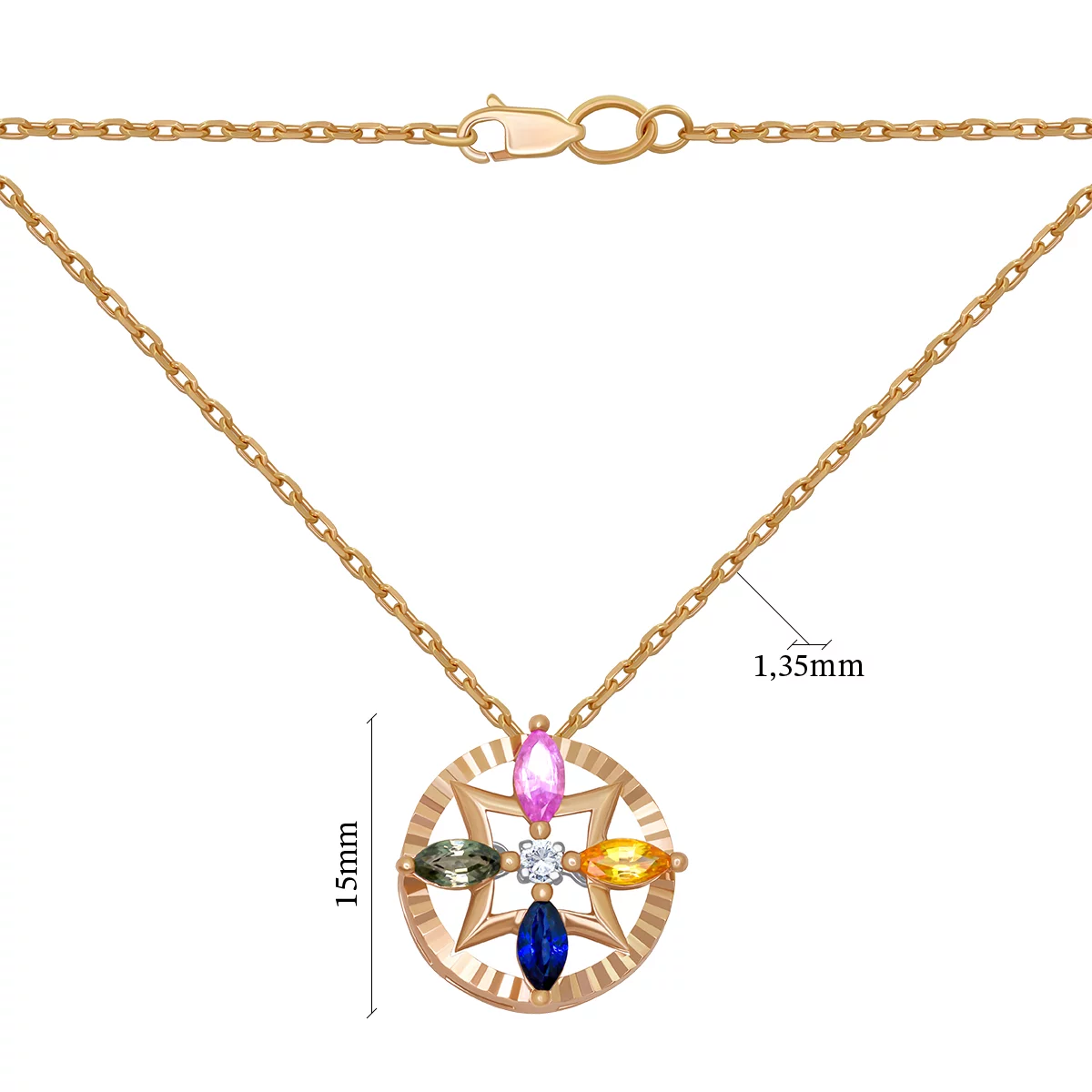Цепочка из золота с подвеской и цветными сапфирами и бриллиантами плетение якорное - 897030