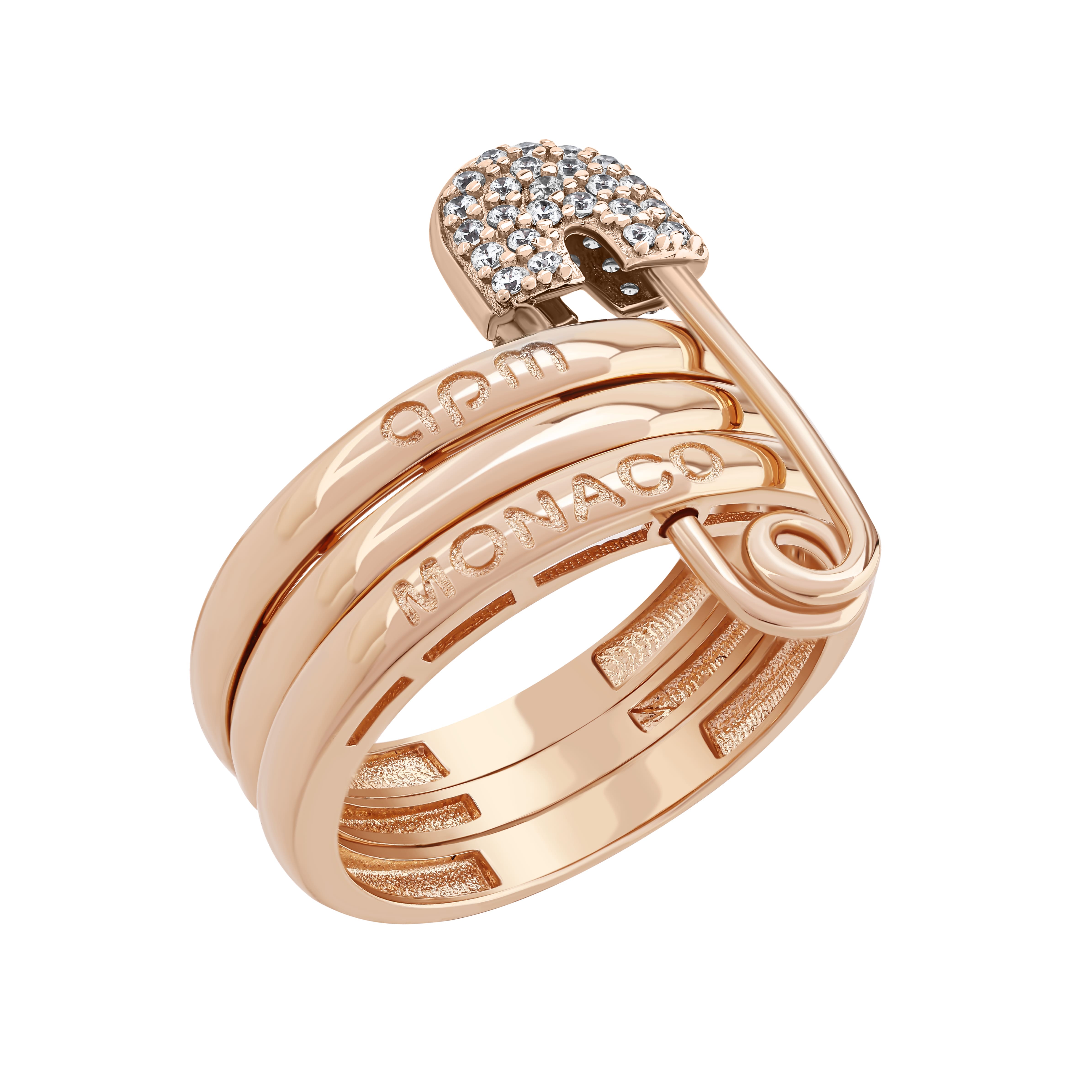 Тройное кольцо "Булавка" из красного золота с фианитами - 1791864