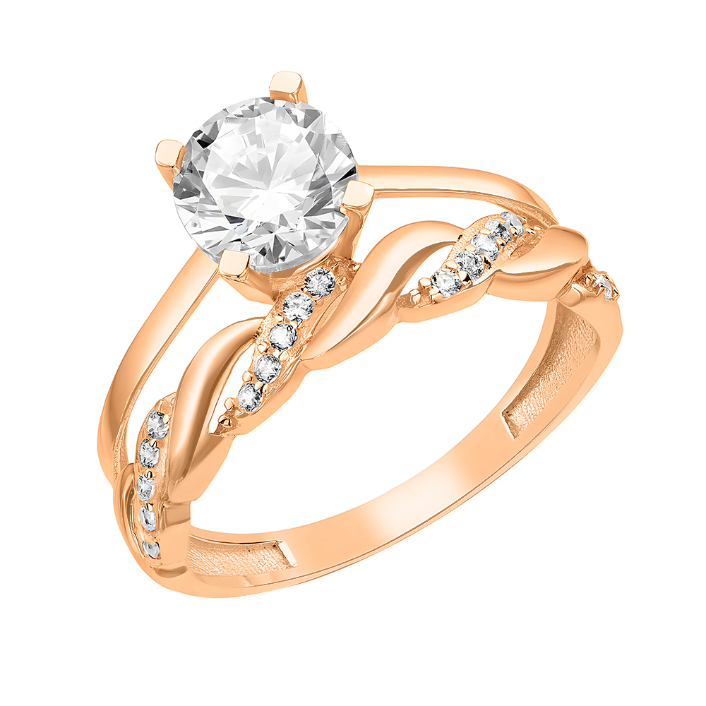 Кольцо двойное из красного золота "Косичка" с фианитами - 1531561