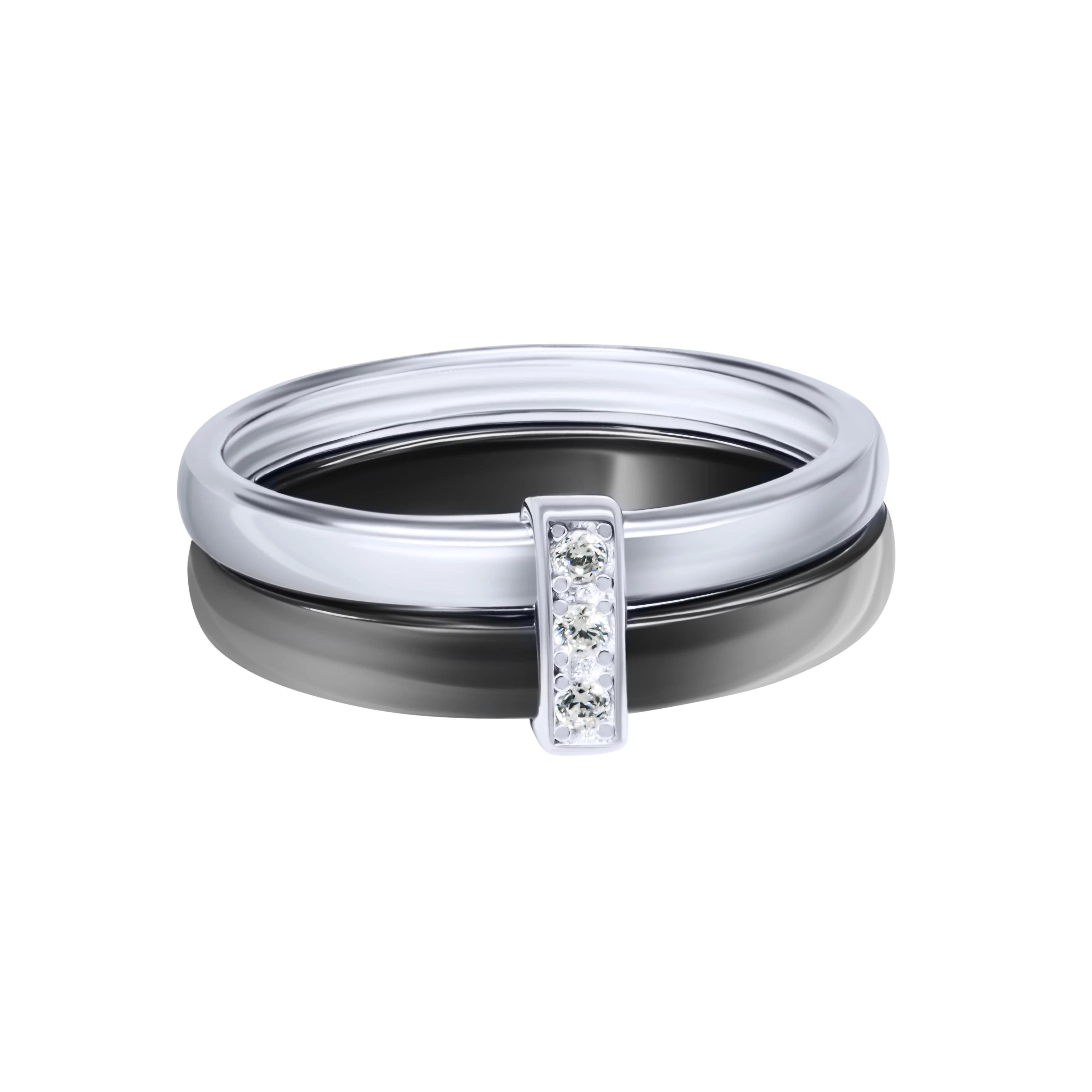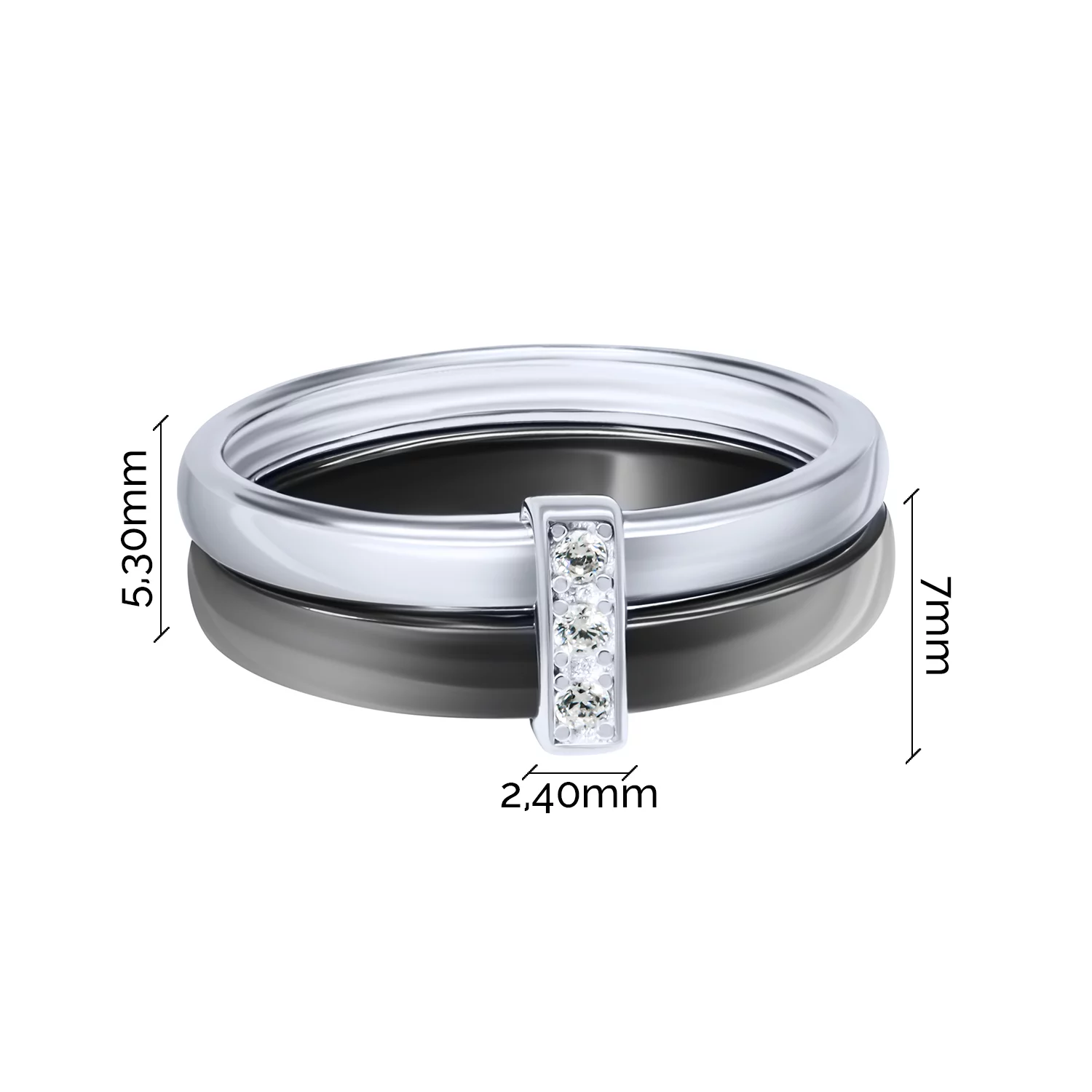 Кольцо двойное с керамикой в серебре с фианитами - 1815016