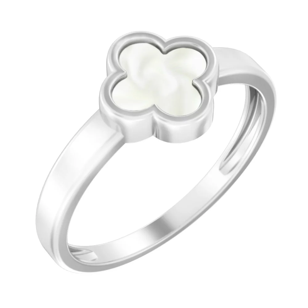 Кольцо из белого золота "Клевер" с эмалью - 1513898